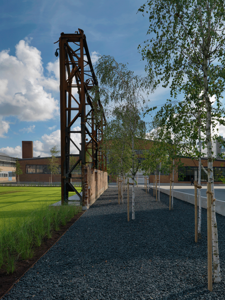 Eine Woche nach dem Brand wurde mit den Planungen für den Platz 2Z begonnen, der an der Stelle der abgebrannten Halle errichtet wurde. Am ursprünglichen Standort der Halle liegt heute der P2Z im Herzen des Industrieareals und bildet dessen grünen Mittelpunkt. Es wurde ein renaturierter Ort geschaffen, der nicht nur als Treffpunkt für die im Werkzentrum arbeitenden Menschen funktioniert, sondern auch Passanten zum Verweilen einlädt. Er ist ein Ort der Kommunikation, ein Platz für Feste oder eine Spielwiese für jedermann. Wenige Teile der H2Z konnten vor dem Abriss gerettet werden, wie zum Beispiel eine Reihe der Außenstützen der Südfassade und ein Teil der Mauer der Nordfassade. Unterschiedliche Bepflanzungen und damit verbundene unterschiedliche Grüntöne zeichnen den Hallengrundriss nach, begrenzt durch die Ruinen und einen neuen Birkenhain. Der Zugang zum inneren Platz markiert gleichzeitig den ursprünglichen Zugang zur Halle.