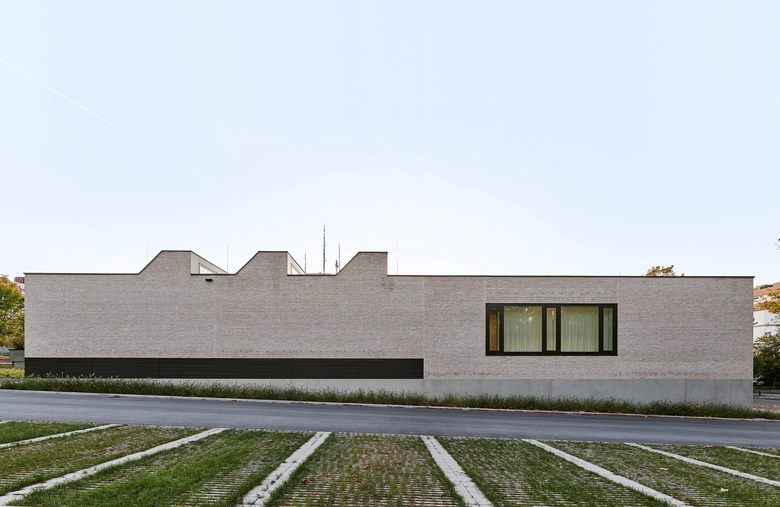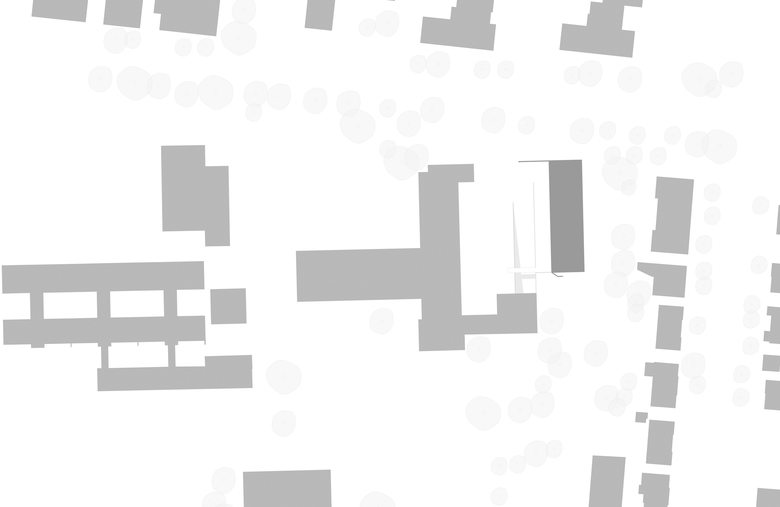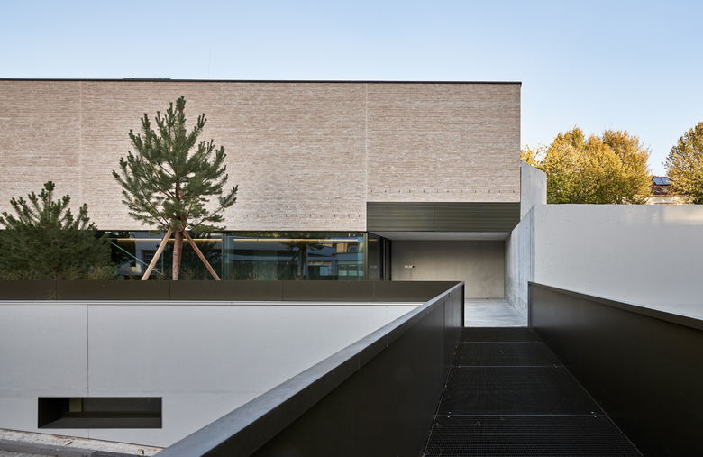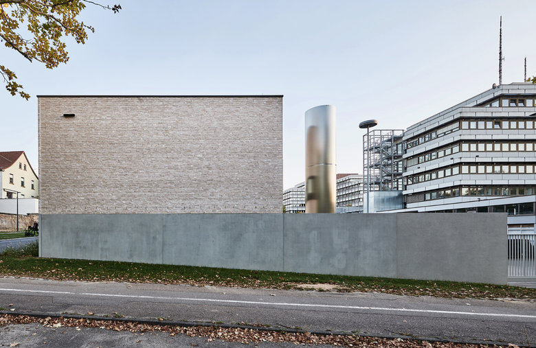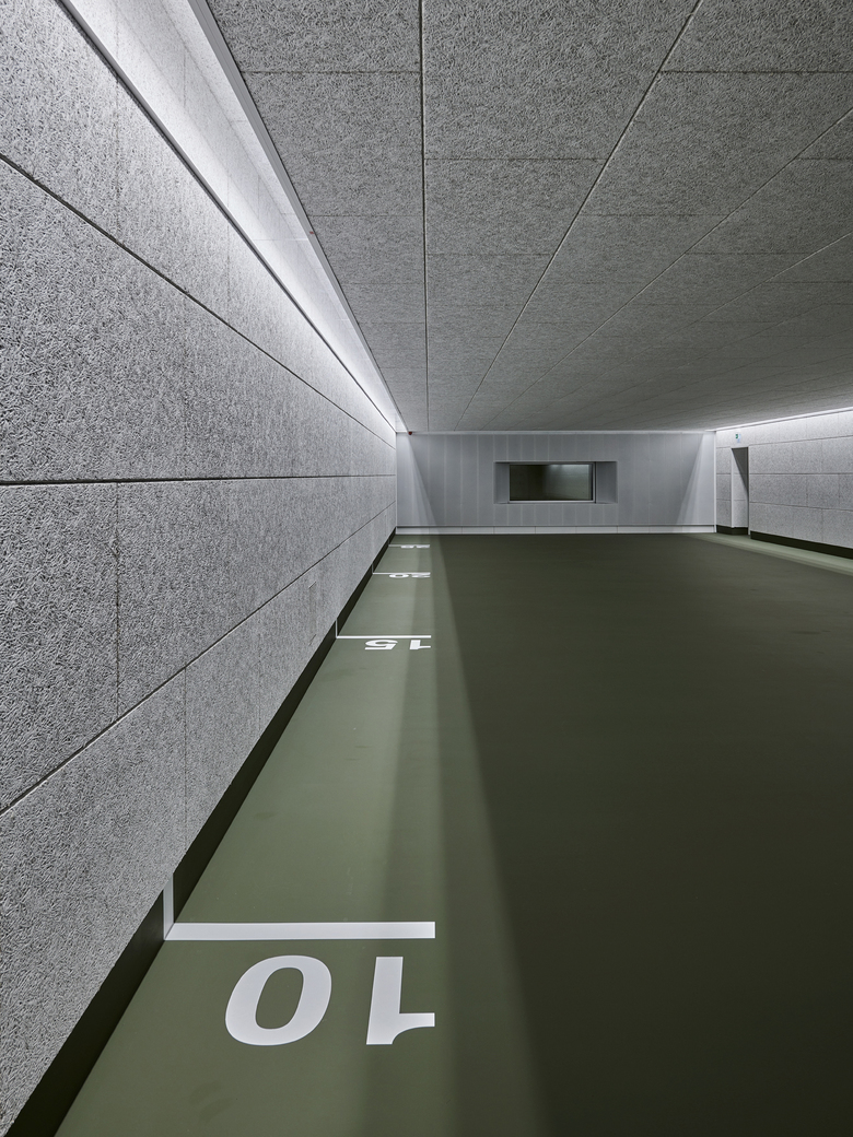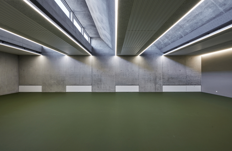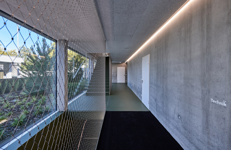 Der Neubau des Zentrums für Einsatztraining mit Raumschießanlage ist an der östlichen Grundstücksgrenze des bestehenden Polizeipräsidiums angeordnet. Das dreigeschossige Gebäude bildet den Abschluss des bestehenden, mit einer Tiefgarage unterbauten Polizei-Betriebshofes. Das Raumprogramm wird auf 3 Geschossebenen verteilt. Die oberen Geschosse enthalten die Trainings- und Seminarräumen, während sich im Untergeschoss die 25-Meter lange Raumschießanlage befindet. Aufgrund seiner Nutzung erhält das Gebäude einen stark introvertierten Charakter mit sehr wenigen Fensteröffnungen. Das betont grob verarbeitete Mauerwerk verleiht den geschlossenen Wandflächen Struktur und Ausdruck.