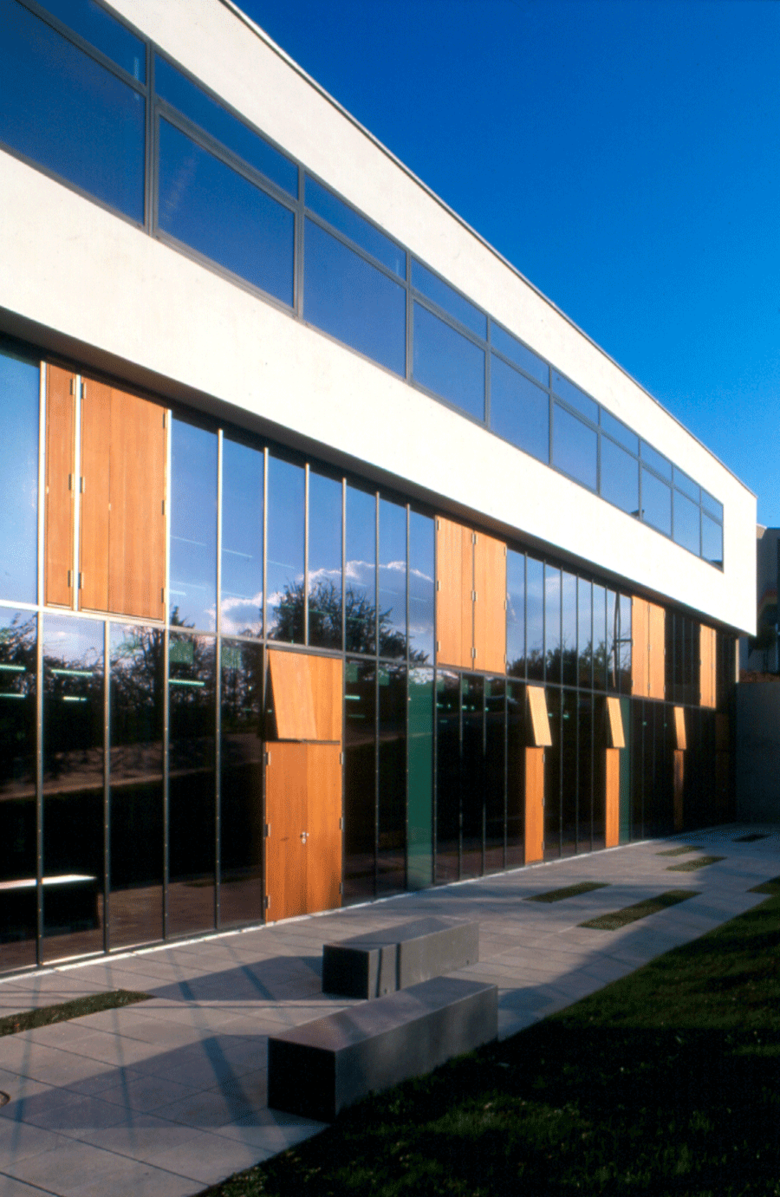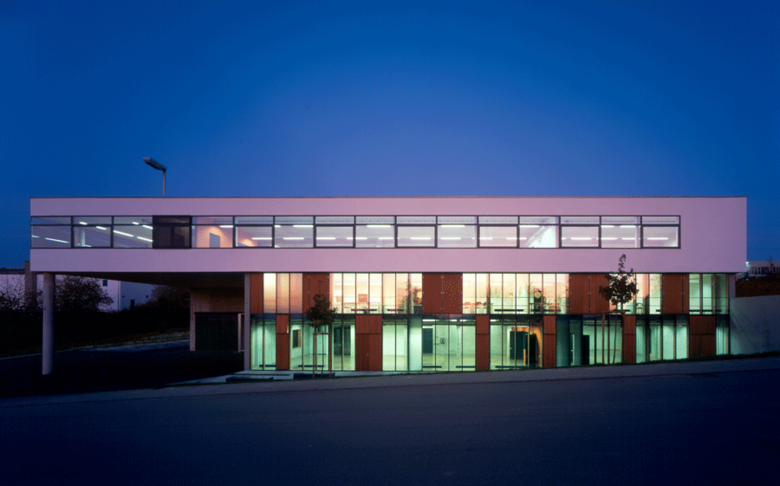 Das Baugrundstück befindet sich in einem Industriegebiet und ist gekennzeichnet durch das Fehlen jeglicher städtebaulicher Bezugspunkte. Entwickelt wurde eine klar strukturierte Anlage, bei der sich die Nutzungen im Erdgeschoss um einen begrünten Innenhof legen. Die Flure, im Außenbereich fortgeführt, bilden einen zusammenhängenden Umgang durch das Gebäude. Das bestehende Gefälle des Grundstücks nutzend, wurde die Anlage zum Teil dreigeschossig ausgebildet. Im Zwischengeschoss befindet sich der Verwaltungsbereich, im Untergeschoss sind weitere Werkstatträume und ein zweigeschossiges Hochregallager untergebracht.