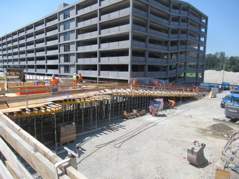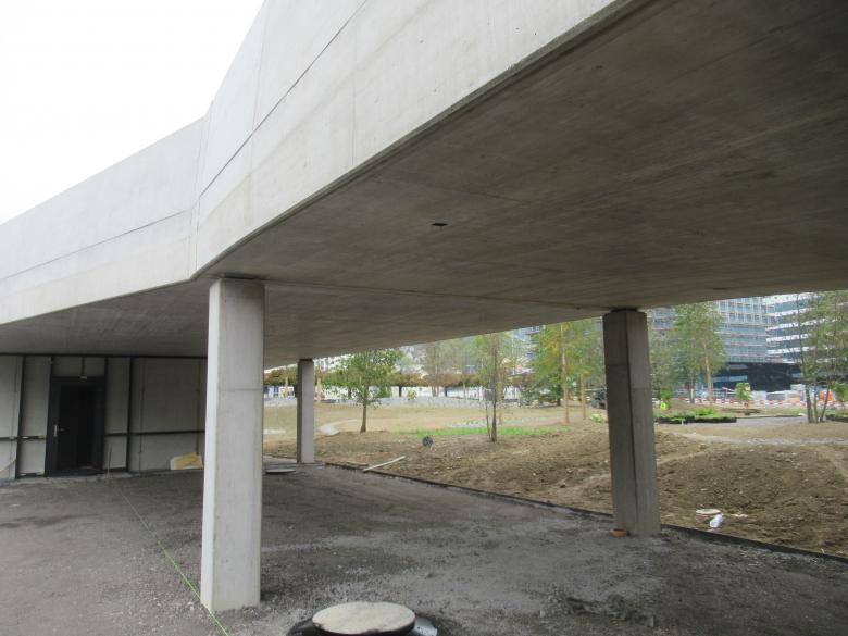 Die Zufahrt ist für den Lastwagenverkehr dimensioniert. Die Tragkonstruktion der Zufahrtsrampe besteht aus einer massiven Stahlbetonkonstruktion mit Sichtbetonanforderungen. Die Brüstung wird als tragendes Element ausgebildet und steift die Rampe zusätzlich aus. Die ganze Rampe steht insgesamt auf 38 Mikropfählen, zur zuverlässigen Lastabtragung ins Erdreich.