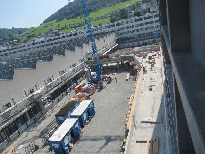 Der bestehende Rampenteil, welcher an das LWF anschliesst, wird auf der Untersicht mit aufgeklebten CFK-Lamellen verstärkt und auf der Oberseite mit einer Betonbrüstung ergänzt.