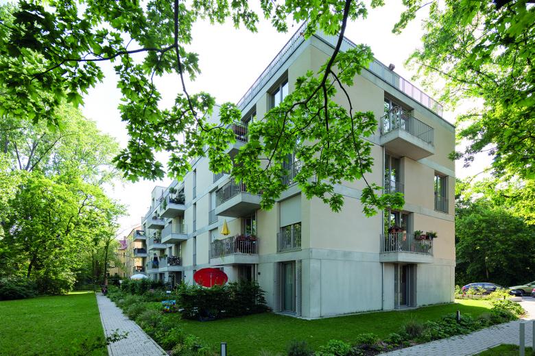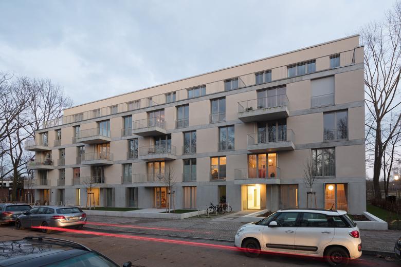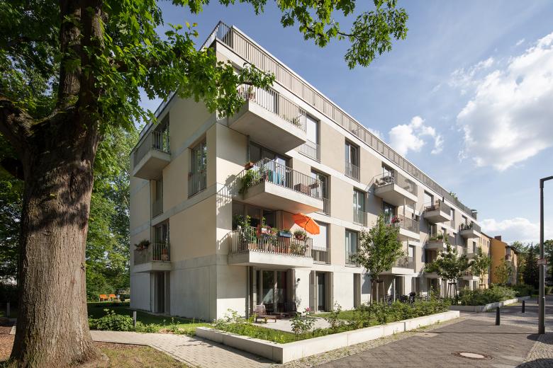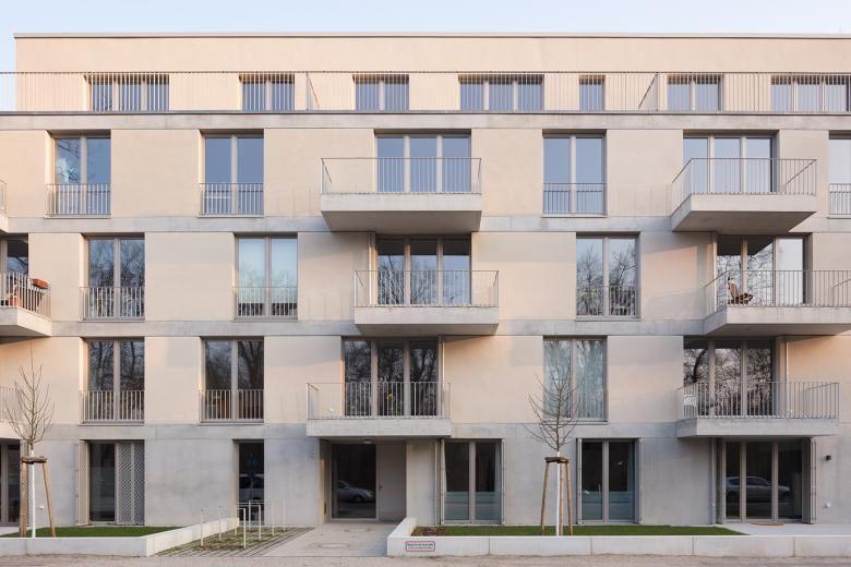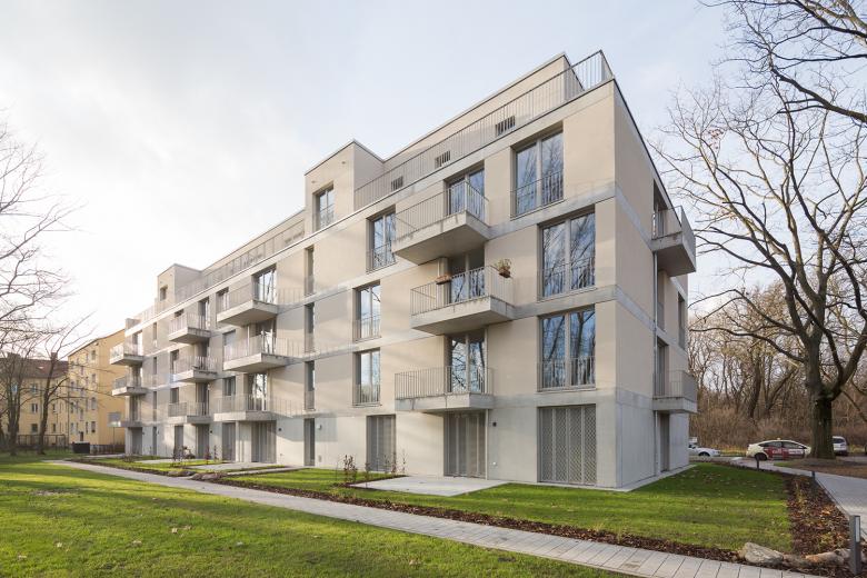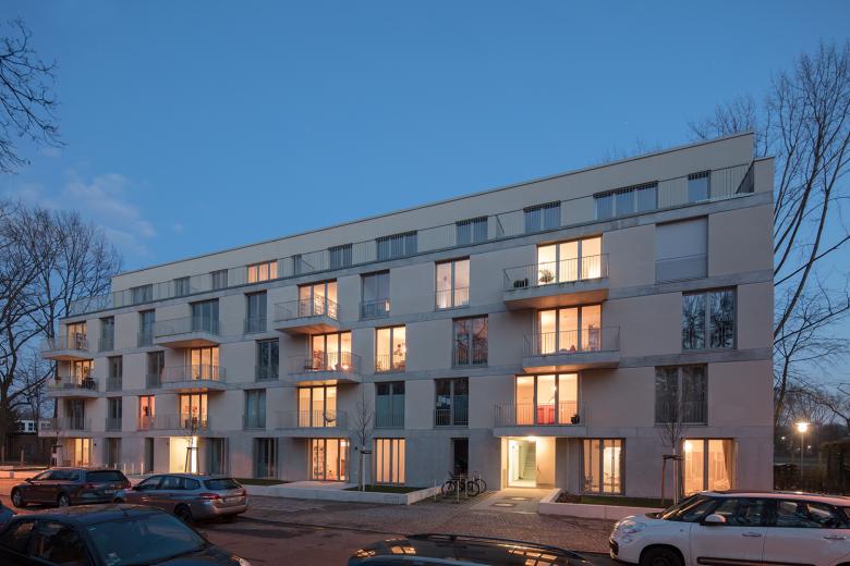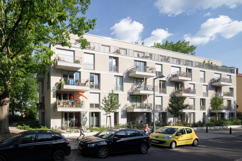 Zwischen Sommerbad Pankow und Schlosspark bauen BFA ein neues Mehrfamilienhaus. Um der attraktiven, rundum begrünte Lage gerecht zu werden, ist das Gebäude allseitig ausgerichtet und lässt so Blicke in die Umgebung zu. Die Balkone sind großflächig und tief, versetzt angeordnet und geben der Fassade eine leichte, luftige Anmutung. Die allseitige Orientierung setzt sich auch im Inneren fort. Die barrierearmen und familienfreundlichen Wohnungen sind so geschnitten, dass diverse Ein- und Durchblicke möglich sind – je nach Perspektive kann ein Blick durch die gesamte Wohnung geworfen werden.