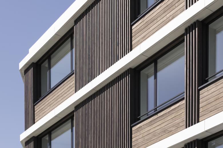 Der Neubau des Pflegeheims schliesst das Areal gegen Osten ab und öffnet sich auf die Hofstatt mit Obstbäumen. Im Erdgeschoss des Neubaus befinden sich der Empfang und Infrastrukturräume. Die Mehrzweckräume sind zur Hofstatt ausgerichtet. In den drei Obergeschossen sind pro Stock zwei Pflegewohngruppen mit je 12 Zimmern angeordnet. Der zentrale Aufenthalts- und Essbereich mit gemeinsamer Teeküche lässt sich hälftig unterteilen.