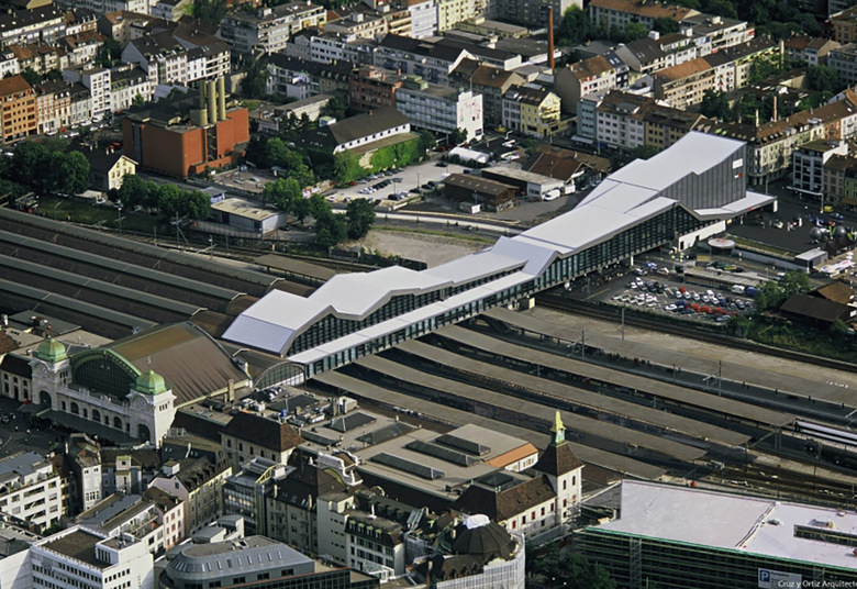 Paralela a las vías del ferrocarril, la estación de Basilea presentaba los problemas típicos de toda estación de paso. La propuesta para su transformación restituye a esta importante pieza de infraestructura su papel urbano, como puerta de la ciudad para los viajeros que llegan a ella y como vínculo entre barrios próximos hasta ahora sin conexión directa. Para conseguirlo, los pasos subterráneos que hasta la fecha