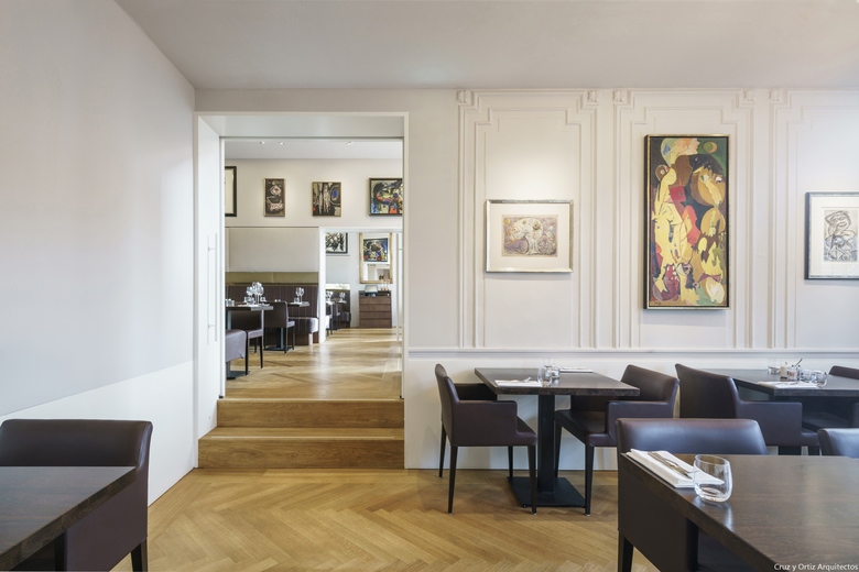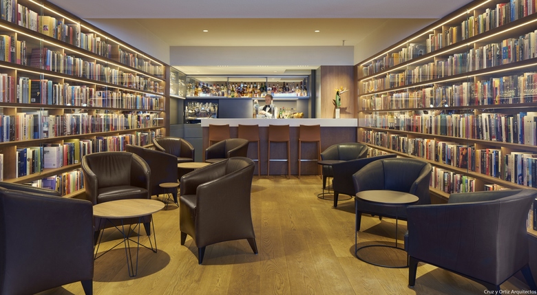 Hotel Ambassade. Interiorismo de zonas públicas, biblioteca y brasserie.