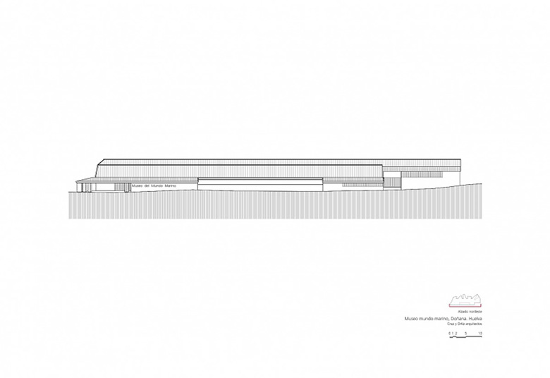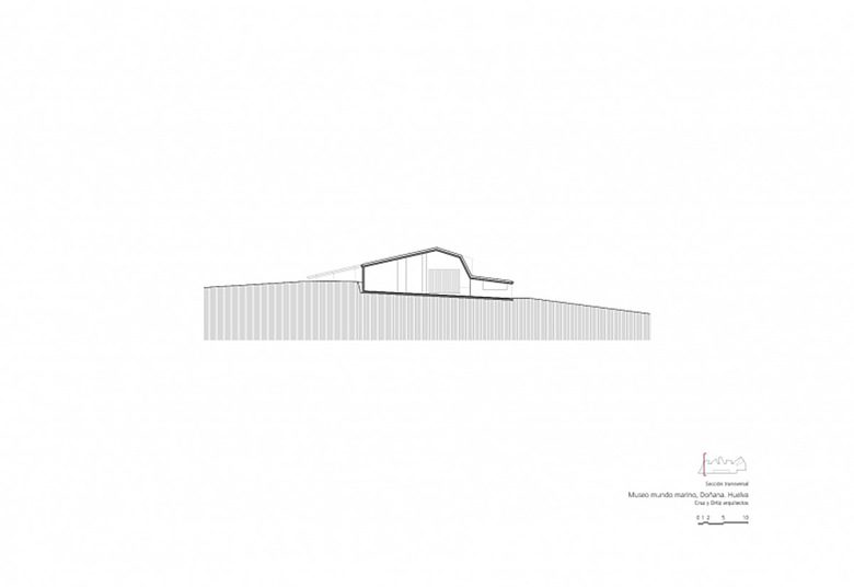 El edificio se asienta sobre un sistema de dunas que queda separado de la playa por un zócalo de arenas que alcanza treinta metros de altura. Se trata de una edificación aislada y singular, semienterrada con respecto a las cotas más elevadas de la parcela, buscando así su integración en el paisaje. Una planta geométricamente compleja que se intercepta con una sección homogénea, genera los espacios interiores necesarios para alojar un pequeño museo dedicado al mundo marino.