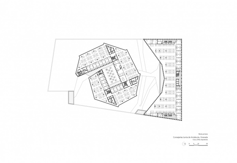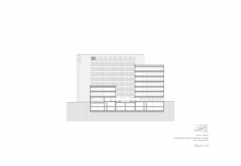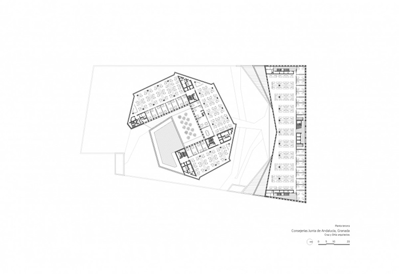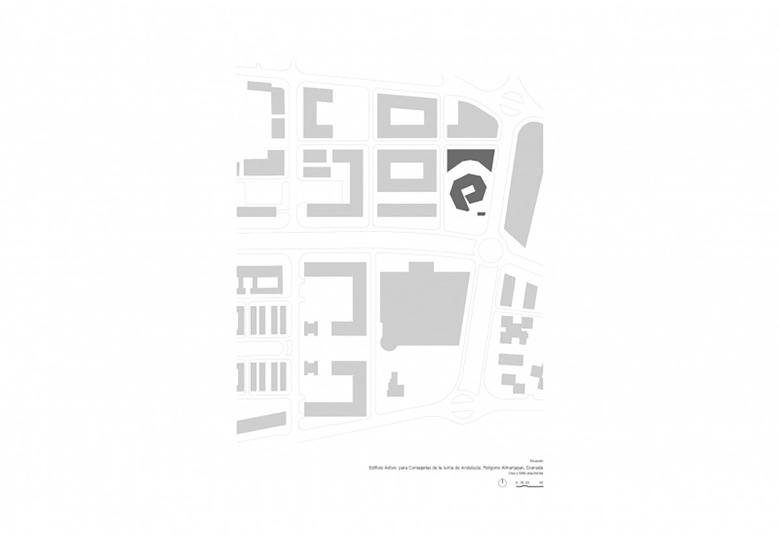 La zona elegida para erigir la sede administrativa de la Junta de Andalucía en Granada, el polígono Almanjayar, no contribuía en absoluto a definir la forma o la organización que el edificio debía tener.