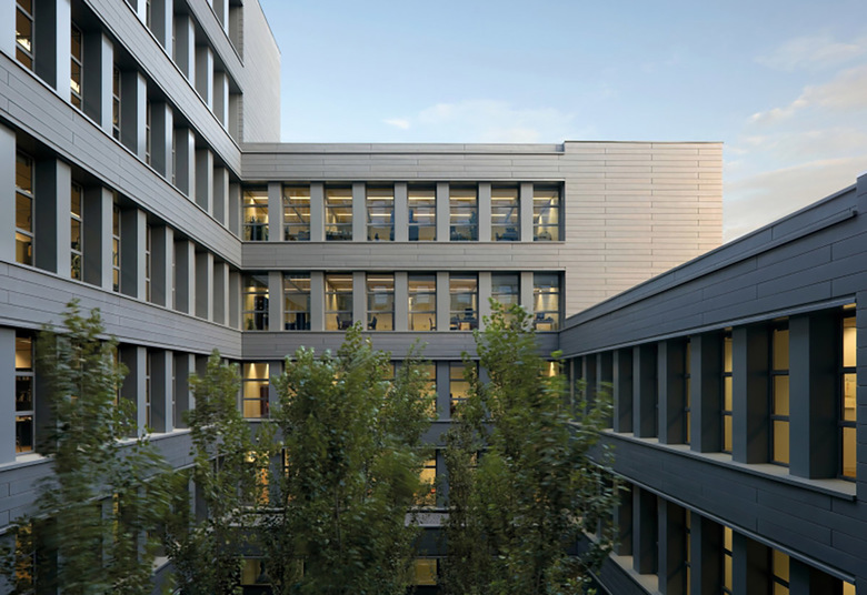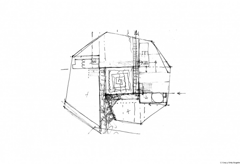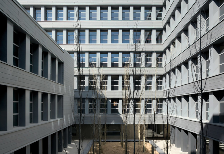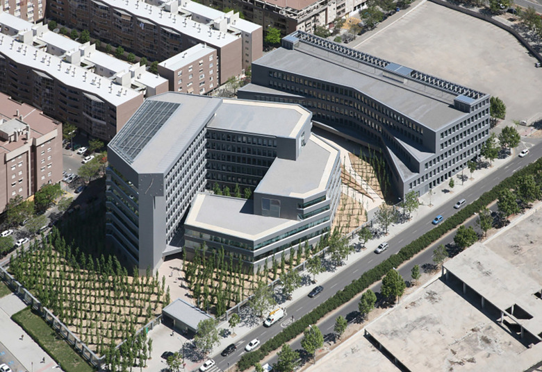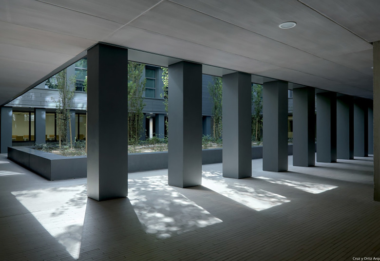 Todo ello ha conducido a proyectar un edificio muy autónomo en la configuración de su perímetro que evita replicar ninguna de las alineaciones próximas. El edificio, además, genera su forma a partir de un nuevo lugar, un patio de geometría precisa que ocupa el centro del edificio y a partir del cual se organiza todo el conjunto: en efecto, toda la edificación se desarrolla en torno a este espacio, subiendo en altura progresivamente y alcanzando tres, cinco, siete o nueve plantas según los cuatro lados del rectángulo del patio. En resumen, el edificio se presenta autónomo respecto a las alineaciones exteriores y se genera a partir de su centro, a partir del nuevo lugar creado.
