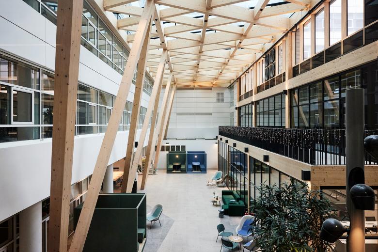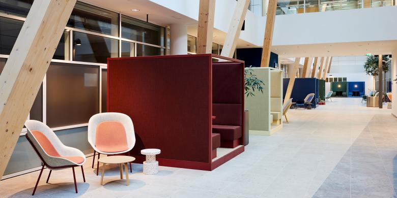 Die Umgestaltung des markanten Bürobaus aus den 1990er-Jahren verfolgt das Ziel, ihn den heutigen Anforderungen an moderne Arbeitswelten anzupassen und ein flexibles, zukunftsfähiges Raumkonzept für das Unternehmen zu schaffen. In dem von Oliv Architekten revitalisierten Bestandsgebäude wird durch eine gezielte Neustrukturierung der Büroflächen mit einem innovativen Desk-Sharing-Konzept nicht nur eine effiziente Flächennutzung erreicht, sondern auch eine inspirierende und produktivitätsfördernde Arbeitsatmosphäre geschaffen. Klare Zonierungen mit Home-Zones für die Teams, vielfältige Rückzugsorte sowie ein durchdachtes Gestaltungskonzept, das sich an der Corporate Identity des Unternehmens orientiert, sorgen für ein harmonisches Gleichgewicht zwischen Offenheit, Kommunikation und konzentriertem Arbeiten. Ein intensives Change-Management mit Workshops und der direkten Einbindung der Mitarbeitenden stellt sicher, dass die Transformation nicht nur architektonisch, sondern auch funktional und kulturell erfolgreich umgesetzt wird. Ergänzend dazu stärkt die Einbettung in ein urbanes Umfeld mit zusätzlichen Nutzungen wie einer Kindertagesstätte, einem Konferenzzentrum und einer begrünten Campusstruktur die Synergien zwischen Arbeiten, Leben und sozialer Interaktion im Quartier.