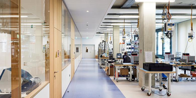 Im neuen hybriden Light-Industrial Gebäude sind erstmals Labor-, Entwicklungs- und Produktionsflächen nahtlos integriert, um eine optimale Vernetzung und effiziente Prozessflüsse zu gewährleisten. Die Konfiguration ermöglicht eine direkte Zusammenarbeit aller Abteilungen. Spezialisten aus verschiedenen Bereichen