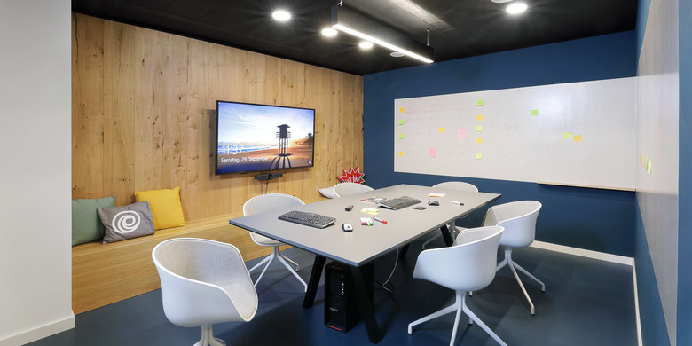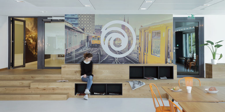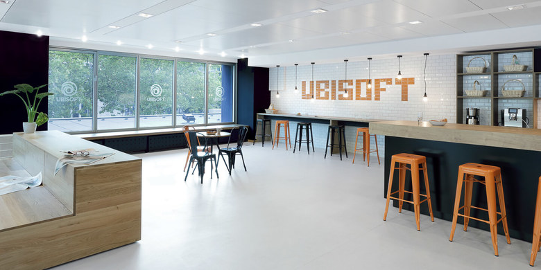 Wo früher die Berliner Bank Konten verwaltete, kreierte CSMM für den Spieleentwickler Ubisoft Blue Byte GmbH eine Bürolandschaft mit Industriecharakter und gleichzeitig seriöser Start-up-Atmosphäre. Die entstandene Bürowelt mit großen Open-Space-Bereichen, einzelnen Gruppenbüros und Meetingräumen, sowie einem Game-Center, entspricht bürotechnisch den höchsten Sicherheitsanforderungen. Jede Tür wurde mit einer Zutrittskontrolle ausgestattet und alle gläsernen Innen- und Außenfassaden foliert. Das Herzstück bildet ein 180 Quadratmeter großer „Meeting Point“. Er vereint als multifunktionaler Raum Küche und Eventspace, wo formelle und informelle Meetings möglich sind.