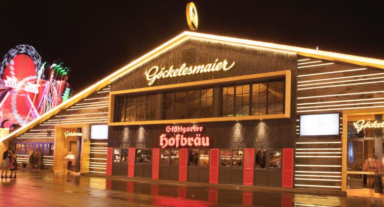 Göckelesmaier GmbH, Gestalterische Leitung von 2009-2023, Detail-, Interiorplanung und Realisierung der Festzelte auf dem Cannstatter Wasen und Frühlingsfest in Stuttgart, Gestaltung zweier Hauptfassaden inklusive aller VIP-Logen