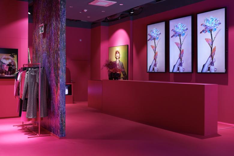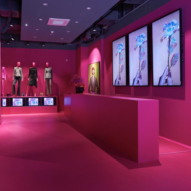 Konzeptentwurf, Detailplanung und Realisierung. Anlässlich des 25 jährigen Firmenjubiläums hat das Modelabel Luisa Cerano eine Jubiläums-Kapselkollektion von der Foto- und Filmkünstlerin Monica Menez in Szene setzen lassen. Cyrus Ghanai gestaltete hierfür den Pop-Up-Store für 6 Wochen Öffnungszeit, der eine Mischung aus Galerie, Bar und Store ist.