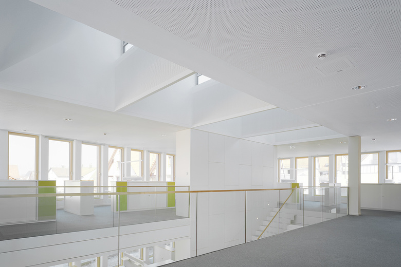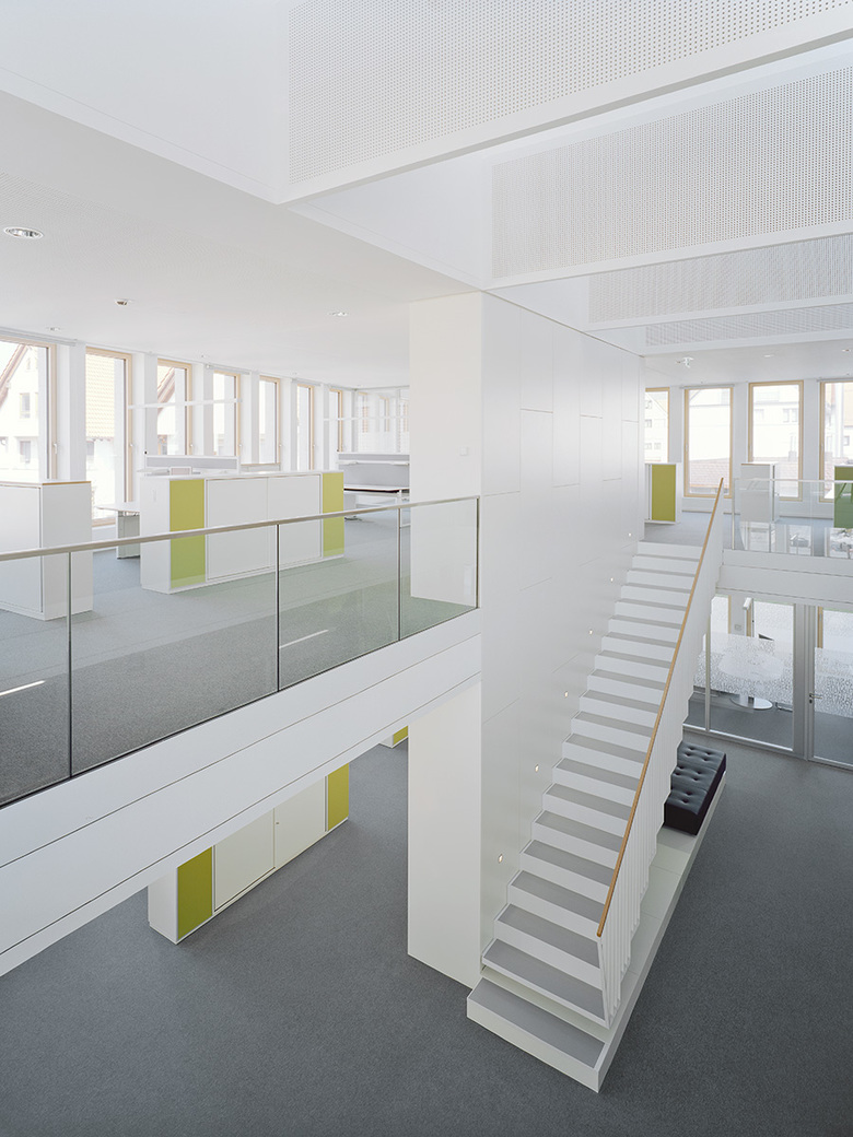 Das Kompetenzcenter Süßen bildet direkt am Filsübergang den städtebaulichen Brückenkopf, der die Stadtteile beidseitig des Flusses miteinander verbindet. Das Volumen des Neubaus variiert zwischen zwei und vier Geschossen. Die viergeschossige straßenbegleitende Bebauung korrespondiert mit vergleichbaren Baukörpern entlang der angrenzenden Straßenzüge, zu den rückwärtigen Grundstücken gelingt aufgrund der Reduzierung der Baumasse eine harmonische Einfügung ins Umfeld.