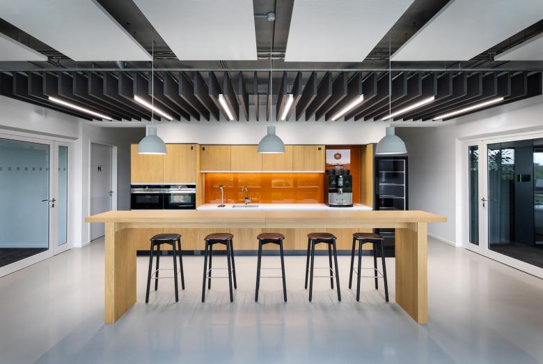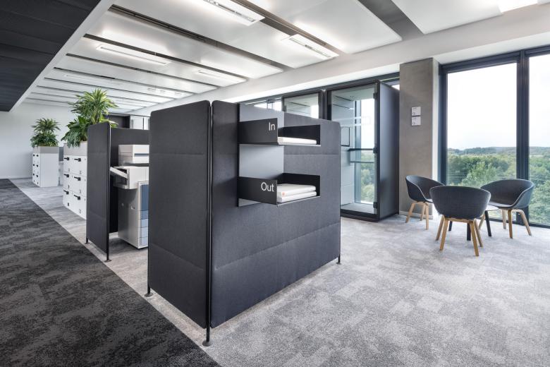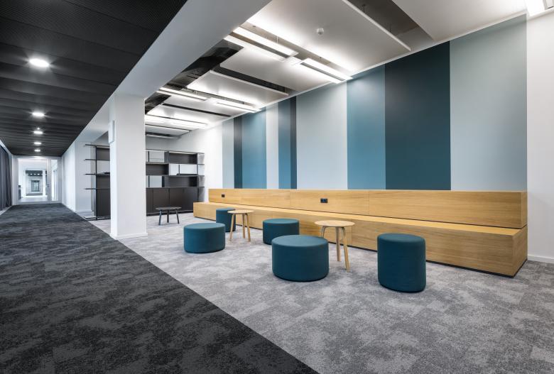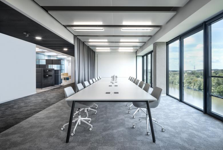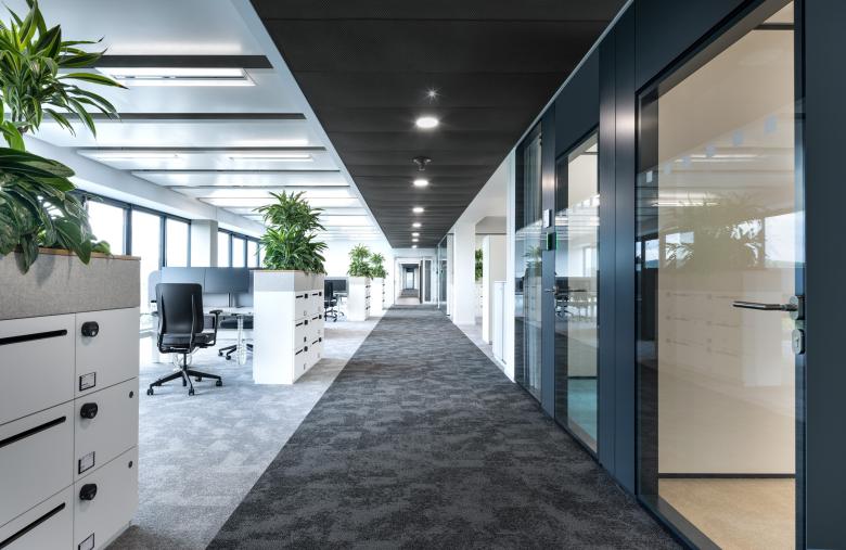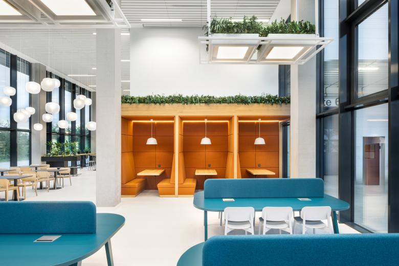 Im Rahmen einer vorgelagerten Beratungsleistung realisierte DIA für den DAX-Konzern eine nutzerintegrierte Workshop-Serie zur Entwicklung einer zukunftsweisenden Arbeitswelt. Die resultierende Bedarfsanalyse diente als Grundlage für die Ausarbeitung eines einzigartigen Designkonzepts, das für sechs Etagen mit insgesamt 15.000 Quadratmetern entwickelt wurde. Dieses bildet sich innerhalb der neutralen technischen Hülle aus, die beide Gebäudeteile Produktion und Büro miteinander verbindet.