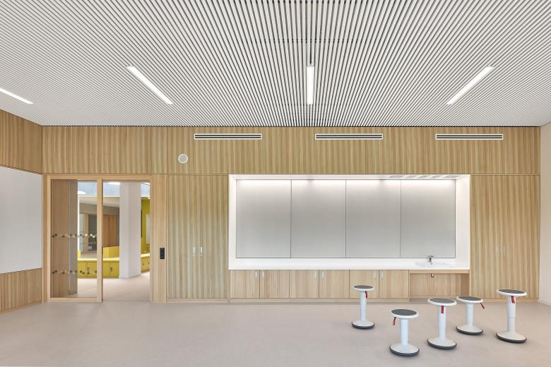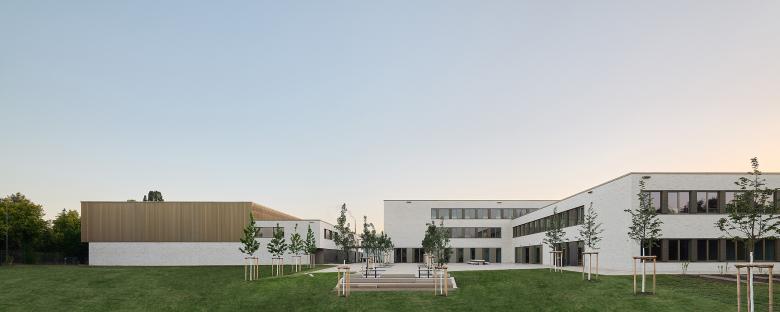 Auf dem neu erschlossenen Sürther Feld in Köln-Rodenkirchen wurde im April 2022 die neue Emanuel-Schule fertiggestellt, eine inklusive, barrierefreie 5-zügige Grundschule mit Zweifeldsporthalle, die nun rund 500 Schüler:innen als offene Ganztagesschule zur Verfügung steht. Das Herz der Schule bilden die Mensa, die Aula mit Bühne und die zentrale Halle. Eine großzügige, markante Treppe führt in die Obergeschosse. Lichthöfe bringen viel Tageslicht in das Gebäude. Durch eine warme und ansprechende Farbgebung entsteht eine hohe Aufenthaltsqualität. Lern- und Unterrichtsräume bilden gemeinsam mit den zugehörigen Differenzierungs-, Aufenthalts- und Erholungsbereichen die Jahrgangs-Cluster. Sie dienen als variable nutzbare, zentrale Lernlandschaften für die jeweilige Jahrgangsstufe. Besonderer Augenmerk wurde auf die Belange von Kindern mit Beeinträchtigungen gelegt.