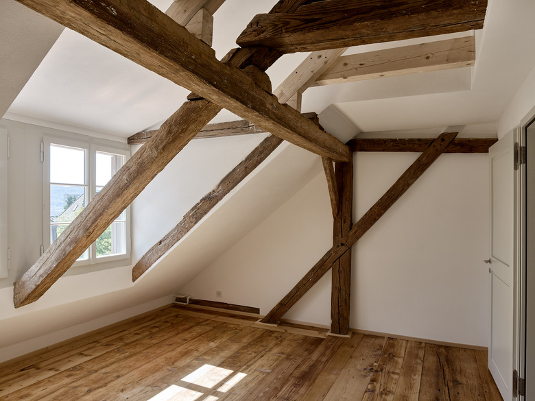 Nachträgliche Sekundäreinbauten werden rückgebaut und das primäre Holztragwerk im nordseitigen Erd- und Obergeschoss inklusive Decke zum Dachgeschoss freigelegt. Defekte Teile des geschützten Tragwerkes werden repariert und durch neue Bauteile ergänzt.