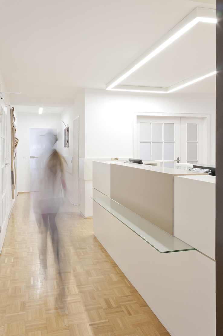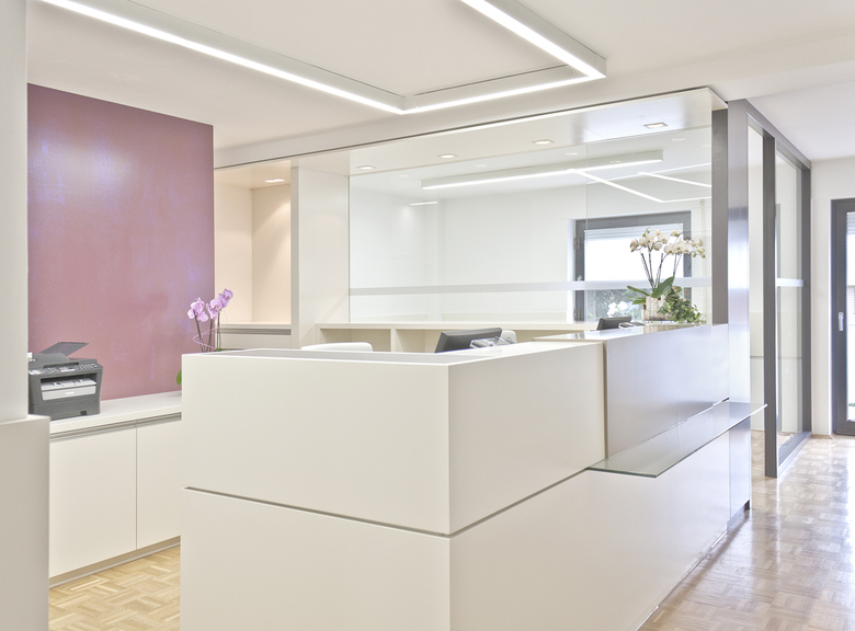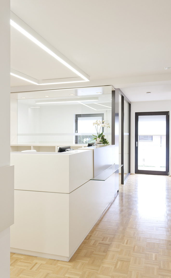 Praktiziert ... – Frau Dr. Sylvia Reul-Freudenstein trat mit dem Wunsch an uns heran Ihre Praxis patientengerecht, funktional und gestalterisch up-to-date einzurichten. Unsererseits wurde ein innenarchitektonisches Konzept unter Berücksichtigung der räumlichen Gegebenheiten massgeschneidert entwickelt, welches das Team in seiner Klarheit begeisterte.