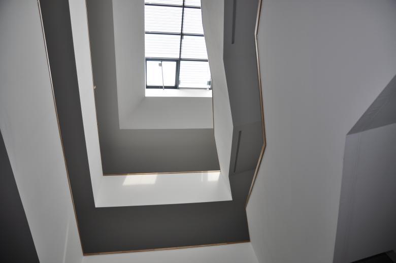 Der Städtebau ist durch insgesamt neun Baukörper geprägt. Die drei Häuser von GERNER GERNER PLUS. folgen dem durchgängigen Konzept des betonten Sicherheitsaspekts und sind um ein halbes Geschoss über das Freiraumniveau angehoben. Sie werden über breite Rampen, die zum Verweilen einladen, erschlossen. Diese Belebung der Zugangsbereiche trägt wesentlich zur spürbaren Sicherheitsqualität bei, ebenso die optimale Belichtung der inneren Erschließung: Mit Glasdächern über den Stiegenhäusern wird das Tageslicht tief ins Gebäude geleitet und durchflutet die Gänge und Stiegen in allen Häusern zugunsten einer freundlichen, offenen Atmosphäre.