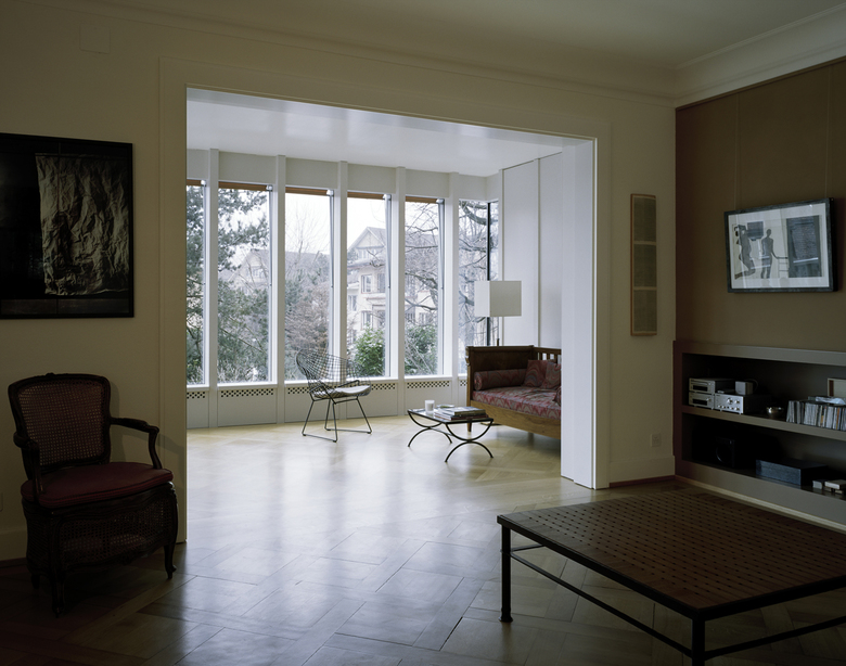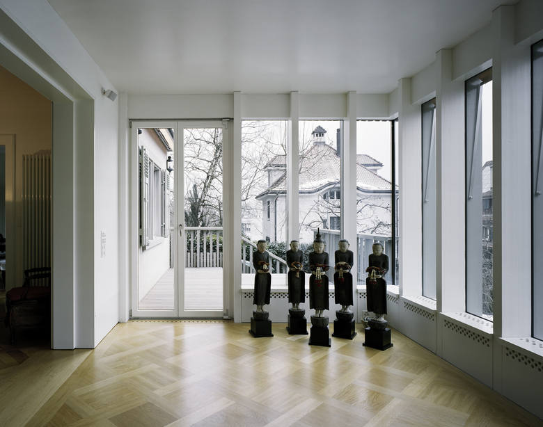 Das um 1930 erbaute Haus «Baumgarten» befindet sich im Quartier Fluntern hoch über der Stadt Zürich. Der kompakte, auf einer mit zehn mal zehn Metern fast quadratischen Grundfläche stehende, massive Bau mit seinem zeltförmigem Dach ist ausgewogen proportioniert. Der Altbau sollte in seiner äusseren Erscheinung nicht grundsätzlich verändert, aber gesamthaft aufgefrischt und über einen Anbau im EG leicht vergrössert werden.