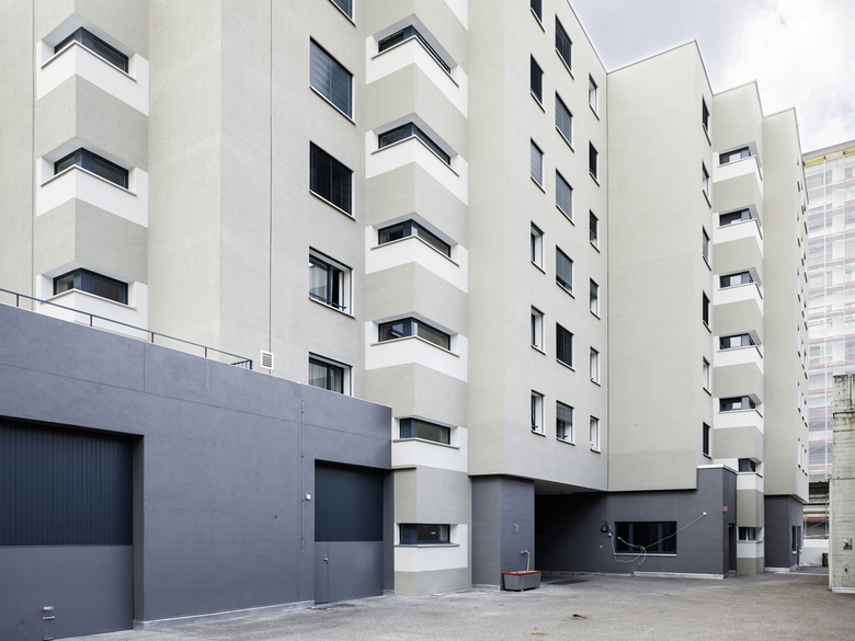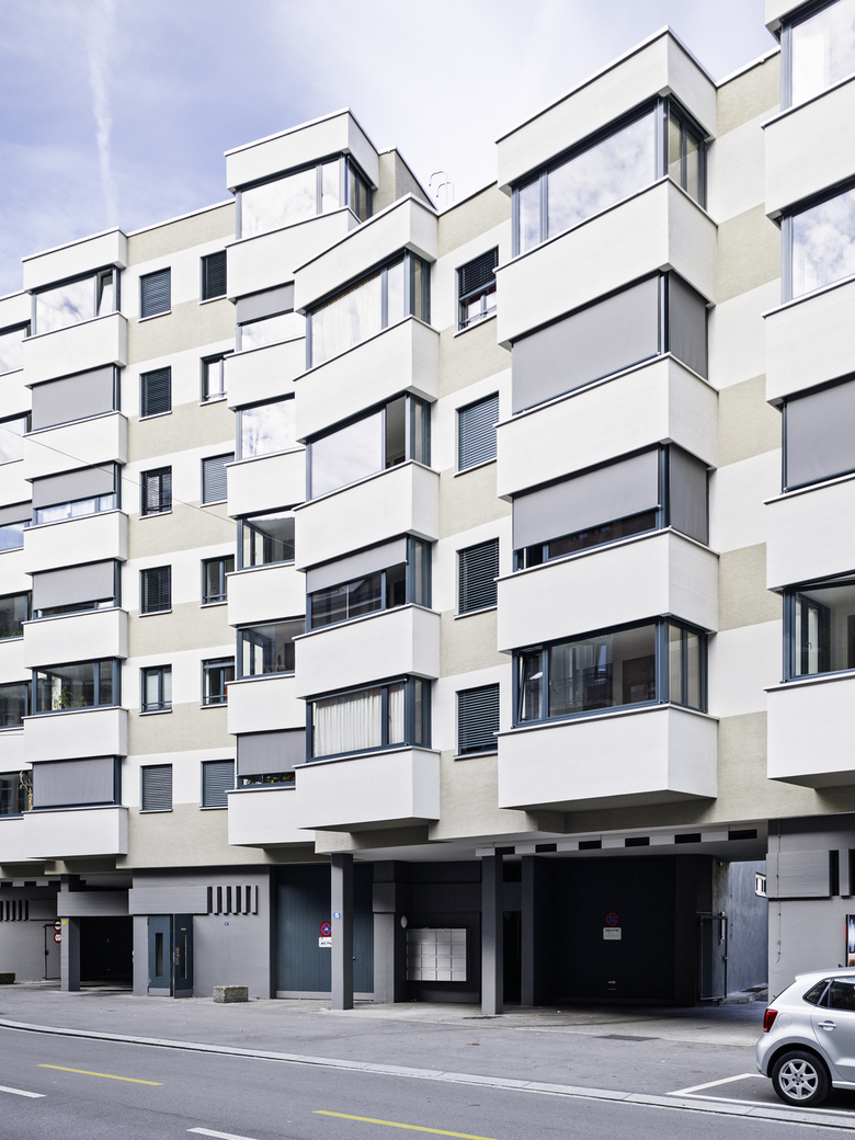 Zum Bearbeitungsperimeter gehören lediglich der Wohnteil inkl. Sockelgeschoss sowie das Untergeschoss mit Tiefgarage. Der Werkhof soll in einer nächsten Etappe saniert werden. Die Zielsetzung der Erhaltung preisgünstigen Wohnraums setzt den Rahmen für eine Gesamtinstandsetzung mit folgenden Schwerpunkten: Sanierung und Modernisierung der Wohnungen nach Bedarf; Verringerung der Wärmeverluste durch Dämmung der Gebäudehülle; Erneuerung der Gebäudetechnik zur Optimierung des Energieverbrauchs und der Behaglichkeit.