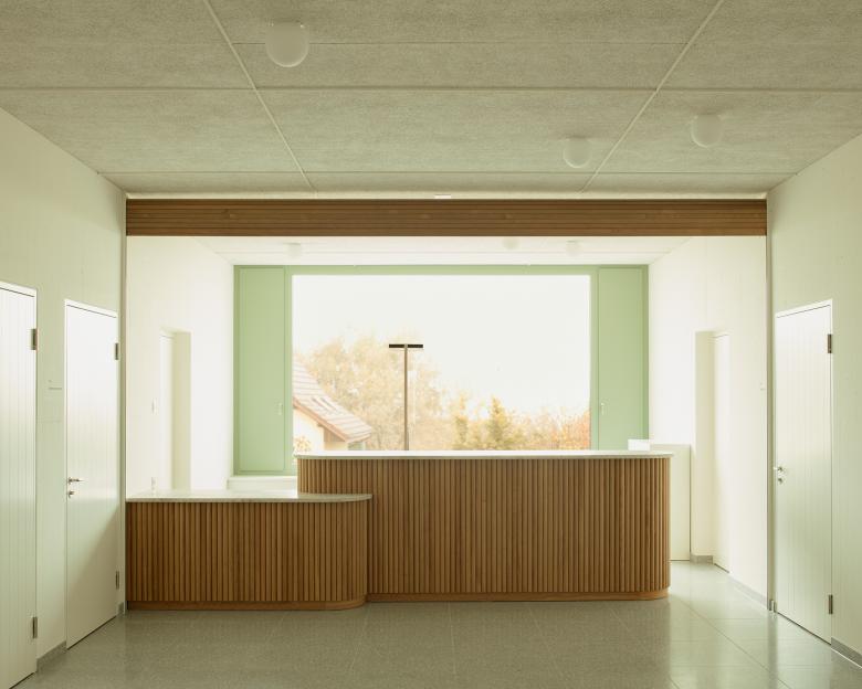 Neben der Schulnutzung im Obergeschoss ist im Erdgeschoss des Neubaus die Gemeindeverwaltung untergebracht.