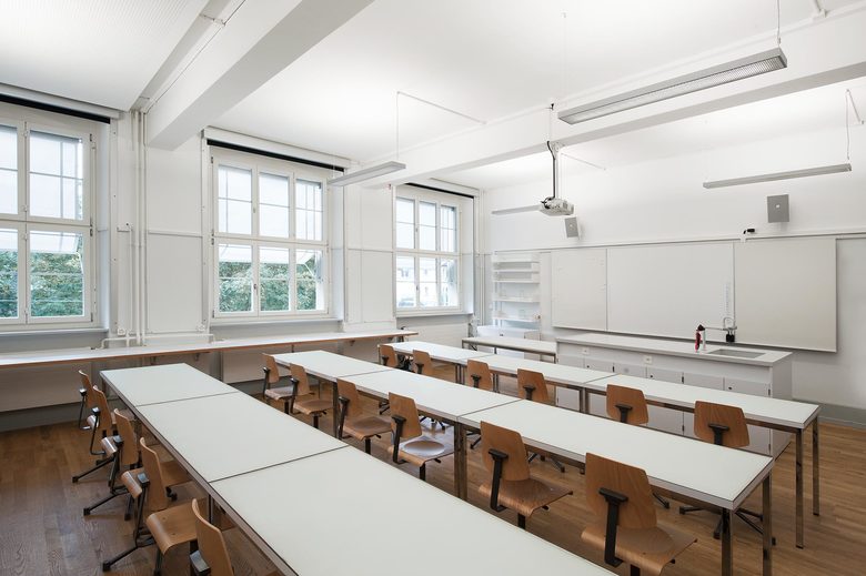 Das denkmalgeschützte Schulhaus Laubegg sollte nach langer Gebrauchsdauer eine nachhaltige Auffrischung erfahren und komplett saniert werden. Die betrieblichen Abläufe waren zu optimieren und die gesetzlichen Anforderungen zu erfüllen. Die Bibliothek, Turnhalle, Musikzimmer, Schulküche, Tagesschule und die Spezialzimmer wurden den aktuellen Ansprüchen nicht mehr gerecht. Der aus den 50er Jahren stammende Anbau wurde stärker in die Gesamtanlage eingebunden und über die neue erdgeschossige Verglasung mit einer Bibliothek ergänzt.