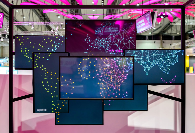 Drei unterschiedliche Präsentationsmodi – geführt, selbstlaufend, Imagefilm – visualisieren ngena auf einer faszinierenden Multiscreen-Installation.