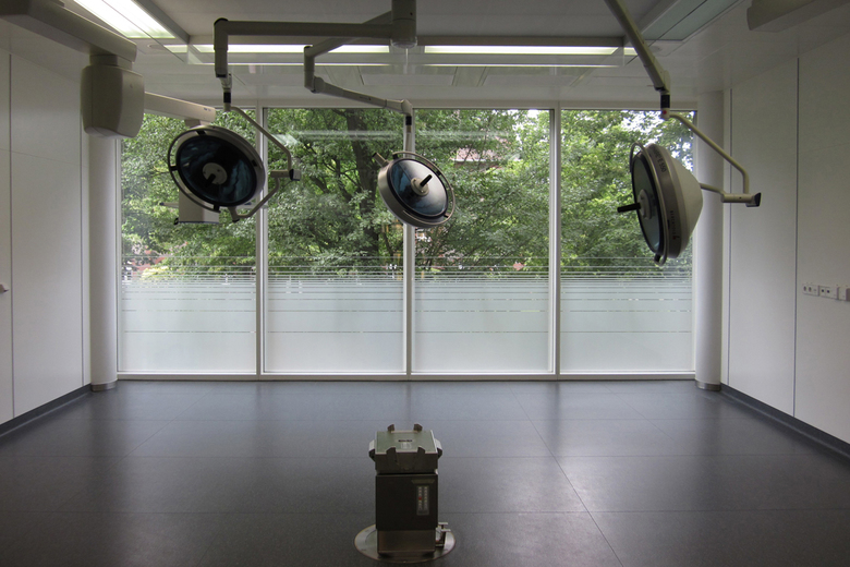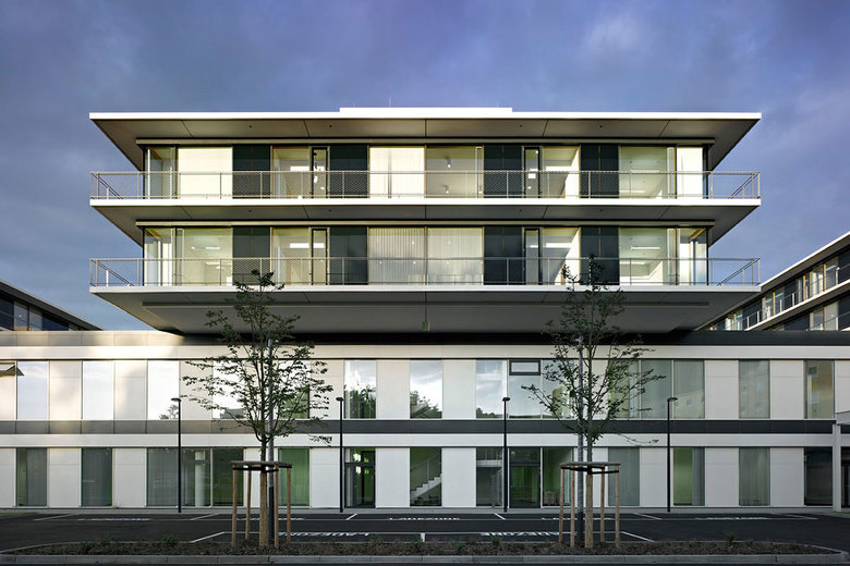 Die doppelgeschossige, lineare Eingangshalle entlang der Magistrale ist Hauptverteiler der Patienten- und Besucherströme. Tageslicht und Sichtbeziehungen nach außen ermöglichen eine einfache Orientierung und bieten hohe Aufenthaltsqualitäten. Das zweigeschossige Sockelbauwerk nimmt die Untersuchungs- und Behandlungsbereiche mit OP und Intensivpflege auf. Oberhalb beherbergen drei Ebenen die Pflegestationen mit 288 Normalpflegebetten und eine Intermediate-Care-Station mit 24 Betten.