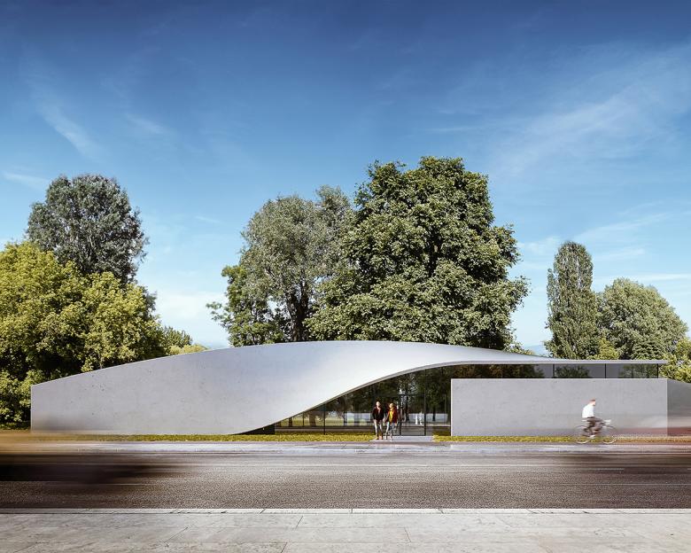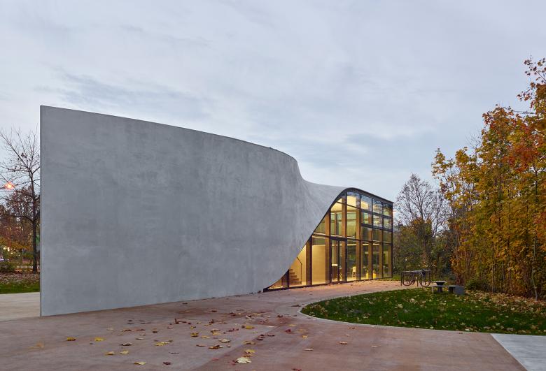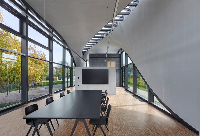 innovative Forschung und wissenschaftlichen Austausch. Der Bau wurde in Zusammenarbeit von Professor Manfred Curbach und seinem Institut für Massivbau an der TU Dresden mit Expert*innen aus den Bereichen Design, Architektur, Materialforschung, Visualisierung und Modellbau von HENN entwickelt. In einem offenen, experimentellen Entwurfsprozess wur-den parallel verschiedene technische Untersuchungen vorgenommen und Gestaltungsopti-onen erprobt. Entstanden ist ein wichtiger Beitrag zur materialwissenschaftlichen Forschung und gleichzeitig ein innovativer Architekturentwurf.