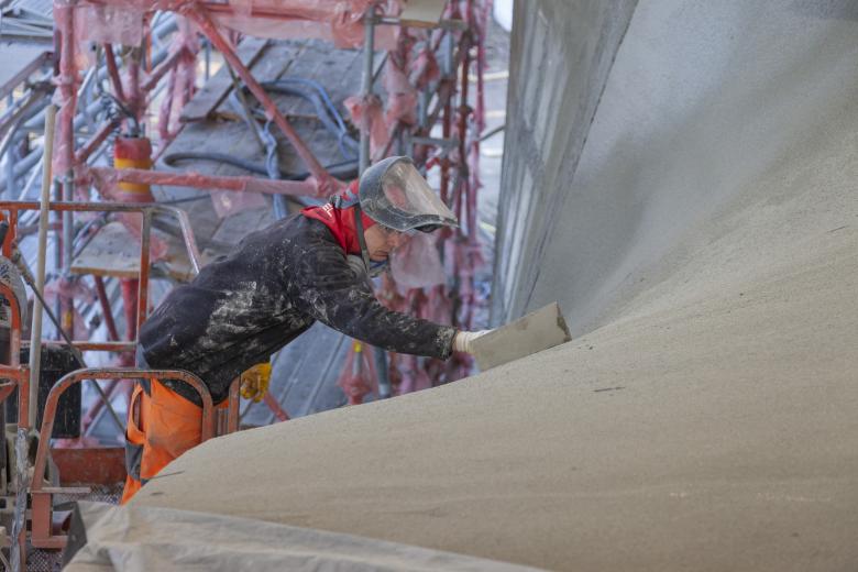 Da Carbon im Gegensatz zu Stahl nicht korrodiert, kommt Carbonbeton mit deutlich weniger Beton aus und CO2 wird eingespart. Somit ist er bis zu vier Mal leichter als herkömmlicher Stahlbeton – und weist eine 4- bis 6-fach höhere Zugfestigkeit auf. Daraus ergeben sich Erleichterungen für den Transport- und Einbauprozess.