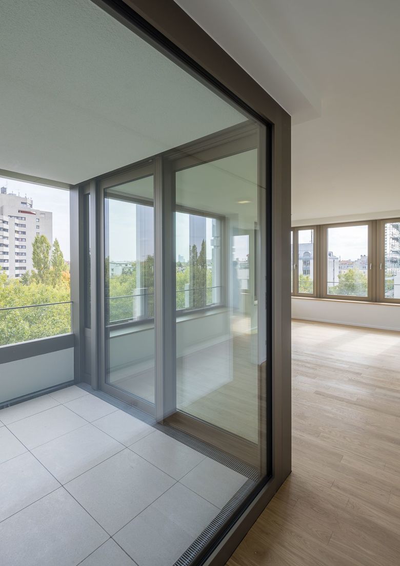 Das städteplanerische Konzept für das Neubaugebiet sieht vor, die einzelnen Nutzungsarten nicht auf unterschiedliche Gebäude zu verteilen, sondern jeweils unter einem Dach unterzubringen. Als Thema mit Variationen eingesetzt, ermöglicht es das genannte asymmetrisch kreuzförmige Fertigteil die Gewerbe-, Büro- und Wohngeschosse einheitlich zu „bekleiden“, ohne die Differenzen zu verschleiern. Im Erdgeschoss, wo ein Foyer sowie Gastronomie und Gewerbe angesiedelt sind, dominieren große Glasflächen, zwischen ihnen Stützen aus Beton, welche die Fertigteile der ersten Ebene tragen. Im ersten, zweiten und dritten Obergeschoss befinden sich Büros. Hier ist die Fassade im entsprechenden Raster getaktet, jeweils vier kreuzförmige Fertigteile umschließen ein Fensterelement. Vom vierten Obergeschoss an lässt sich die dahinterliegende Wohnnutzung erkennen. Loggien und ein höherer Fensteranteil erzeugen einen aufgelockerten Rhythmus, das genannte Fassadenelement konnte auch in diesen Bereichen mit kleinen Variationen weiterverwendet werden. Den Wohnungen im fünften Obergeschoss sind darüberliegende Dachterrassen mit eigenem Austritt und Abstellmöglichkeiten zugeordnet. Erschlossen sind Wohn- und Bürogeschosse durch ein gemeinsames Foyer mit jeweils separatem Lift und gemeinsamen Treppenhäusern.