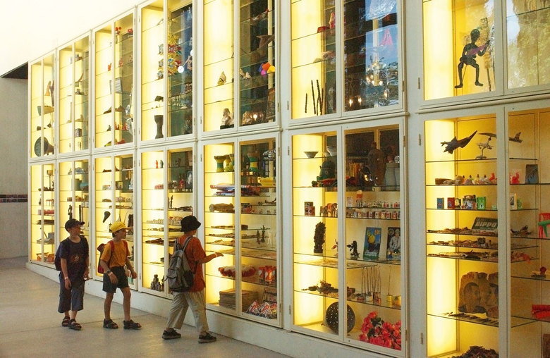 Die Ausstellungen sind unter dem gekurvten und bunten Forum Soft eingenistet. Das Theater Mondial Künstler aus aller Welt. Bilder, Küche und Musik verschmelzen zu einem Gesamtkunstwerk.