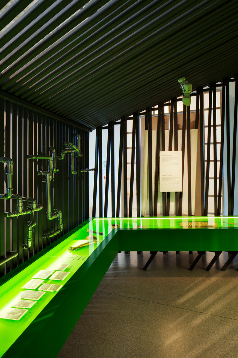 Der Rundgang durch die Ausstellung verbindet die übergeordneten Themenbereiche Kultur, Kommunikation und interkulturelle Kommunikation: Der Besucher betritt zunächst eine Gewächshaus-Anlage, die Kultur im ursprünglichen Sinne von Kultivieren in der Landwirtschaft darstellt. An den Wandflächen des darauffolgenden Raumes bildet ein grossformatiges Flaggenalphabet als Symbol für internationale Verständigung den Hintergrund für die Themen der Kommunikation. Raummittig vermischen sich Kultur und Kommunikation.