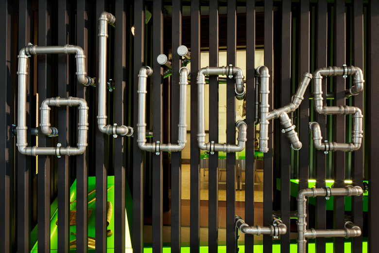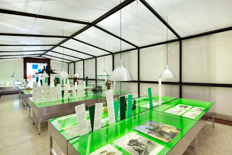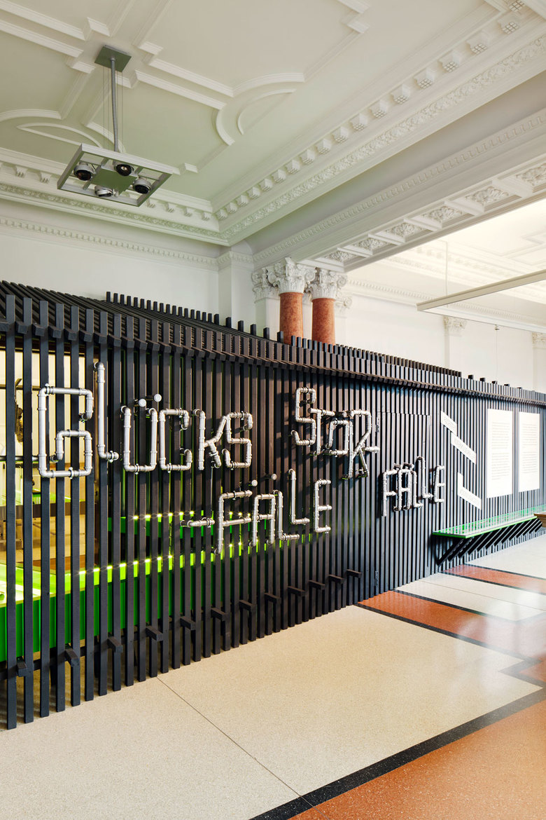 Eine Ansammlung von Themeninseln präsentiert hier die interkulturelle Kommunikation: Einer Versuchsanordnung im Labor gleichend reagieren fremde und bekannte Kultur-, Erfahrungs- und Wissenswelten wie chemische Stoffe miteinander – facettenreich und unvorhersehbar. Das Ergebnis sind gelungene und fehlgeschlagene Experimente: « Glücksfälle und Störfälle ».