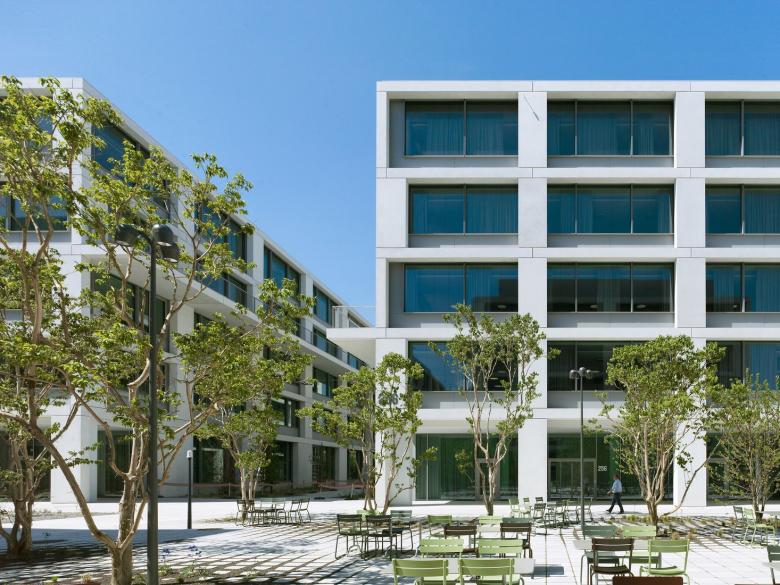 Auf dem Roche-Areal in Kaiseraugst entstand der grösste Roche-IT Standort weltweit und wurde mit einem Learning-Center ergänzt. Die vier Gebäude unterscheiden sich leicht in der Grösse. Identische Fassaden und der zentrale Hof verbinden die Gebäude visuell. Die innere Gebäudestruktur bietet alle Voraussetzungen, welche von einer modernen Bürolandschaft gefordert werden. Ob Einzelbüros, Gruppenräume oder «open office» sind alle Optionen möglich.