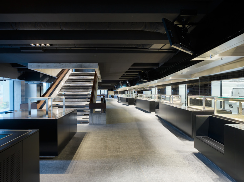 Der Besucher der Free Flow Zone sind verstärkt auf das gastronomische Angebot aufmerksam zu machen. Dazu werden hauptsächlich die Raumelemente (Ausgabe, Theken, Grillstation usw.) mit Licht inszeniert. Das Licht soll stark gerichtet sein, eine sehr gute Farbwiedergabe aufweisen, Licht-Schattenspiele erzeugen und dadurch die Speisen und Produkte in Szene setzen. Frische, gesunde Lebensmittel und wechselnde gastronomische Themen erhalten dadurch einen wichtigeren Stellenwert. Um diesen Effekt weiter zu steigern, ist während den Restaurantöffnungszeiten die „Grundbeleuchtung“ in den Verkehrswegen so reduziert wie möglich zu betreiben. Dies verstärkt den Hell-Dunkeleffekt. Als Unterstützung der Raumorientierung sollen die beiden „Dächer“ über den Kassenzonen als helle Körper erscheinen. Die höhere Lichtintensität vereinfacht die Orientierung und dient als Übergang in die Speisesäle.