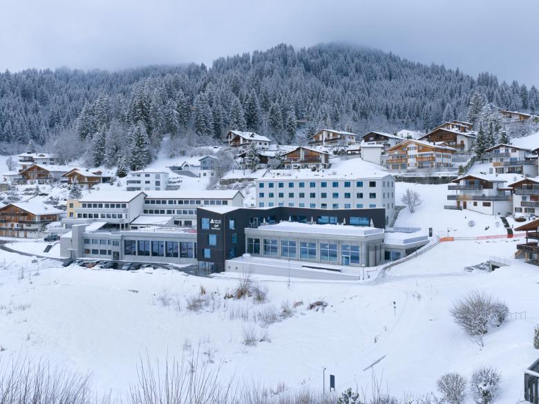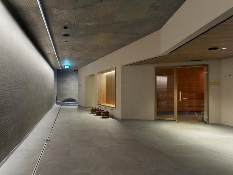 Das Projekt «wellnessHostel3000» umfasst die Erneuerung des bestehenden Hallenbads „Aua Grava“ und die Ergänzung durch einen Wellness-Bereich sowie den Neubau einer Jugendherberge mit rund 170 Betten. Das neue Wellness-Hostel 3000 von SSA Architekten befindet sich zwischen der bestehende Bebauung der frühen 1980er-Jahre, einer Schule sowie des bestehenden Hallenbades. Herzstück der Gesamtanlage ist der Empfangsbereich hoch über der Strasse auf dem Niveau des Hallenbaddaches. Dieser Bereich wird strassenseitig durch eine attraktive, mehrgeschossige Kaskadentreppe erschlossen. Der moderne Neubau besteht aus Beton, kombiniert mit hellem Holz und grossen Fenstern. Die Zimmer und die Lobby sind ausgestattet mit Vitra-Möbeln und dekorativen energieeffizienten Designleuchten, die zu einer einladenden Atmosphäre der Räumlichkeiten einladen, das Gebäude sanft beleuchten und zu einer modernen und attraktiven Atmosphäre beitragen. Besonderes Juwel ist dabei die farbige Beleuchtung im Wellnessbereich mit seinen Objektleuchten, die den Räumlichkeiten seinen spezifischen Charakter verleihen. Ergänzt werden die auffälligen Designleuchten mit funktionalen Leuchten, die in ihrer Erscheinung zurücktreten und die die Architektur energiesparend modulieren und ausleuchten.