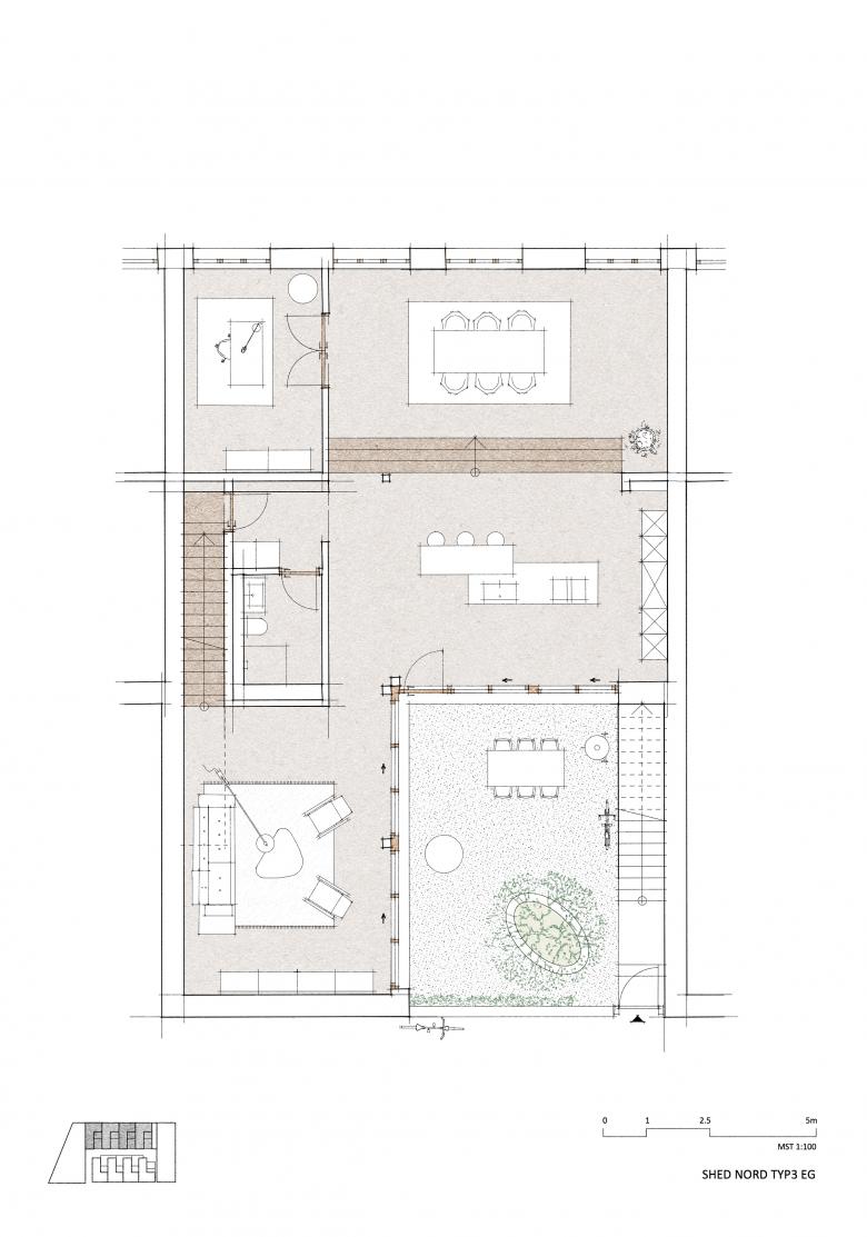 Wir haben die bestehende Shedhalle in acht Lofthäuser umgestaltet. Der gesamte Innenausbau ist die ungewöhnliche Transformation einer Produktionshalle in acht grosszügige Wohnwelten.
