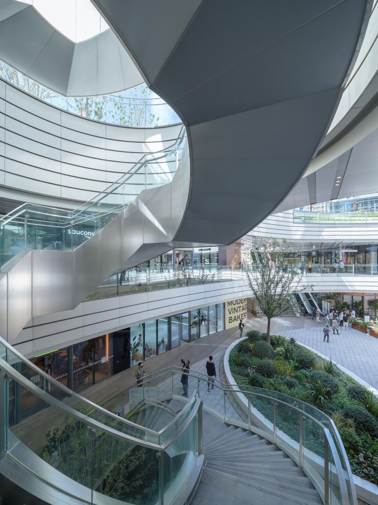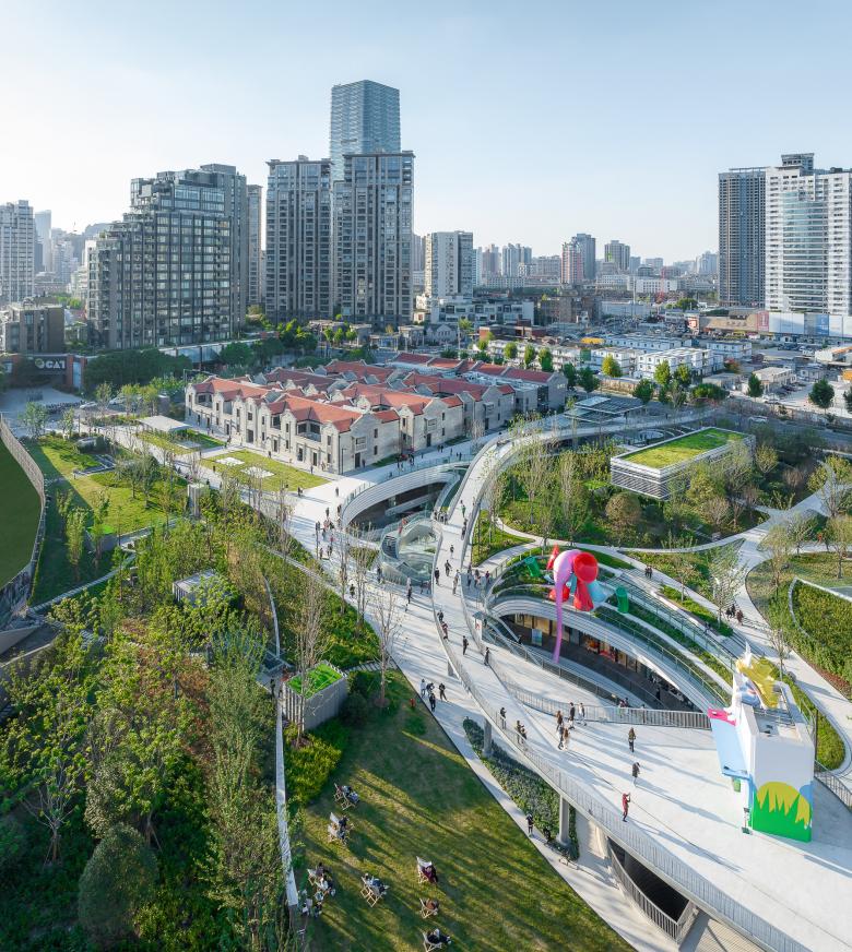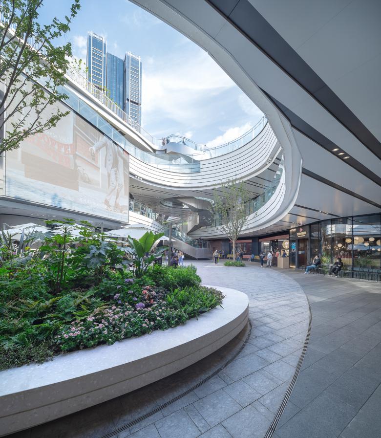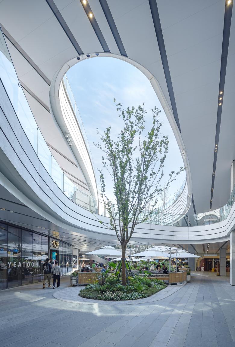Shanghai Suhe MixC World is one of Kokaistudio’s most innovative shopping mall project. It is a public space for fun and relaxation. As transplanted trees grow, they will provide welcome shade for green land goers’ comfort and enjoyment. In a city as dense as Shanghai, and where a majority of residents do not have access to a private garden, green lands are of vital importance for recreation, wellbeing, and protecting the local environment.