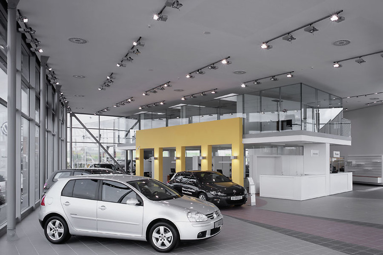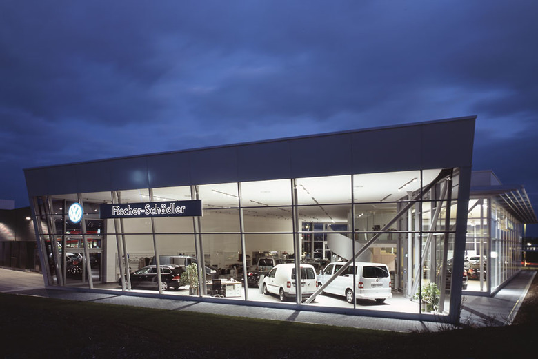 Die beiden transparenten Baukörper sind stadträumlich ablesbar, im Innern ergeben sich zwei spannende Ausstellungsbereiche mit Straßenfluchtwirkung. Der eine verjüngt sich perspektivisch, der andere öffnet sich in die unverbaute Landschaft. Die hohen Decken, auf denen sich die Leuchten wie Straßenmarkierungen abzeichnen, verstärken diesen Eindruck. Beide Ausstellungsräume sind durch eine eingestellte, transparent gestaltete Galerie voneinander getrennt. Der Kundenempfang und die offenen Verkäufer-Arbeitsplätze befinden sich im Erdgeschoss, die verglasten Büros der Sachbearbeiter und Geschäftleitung im Obergeschoss.