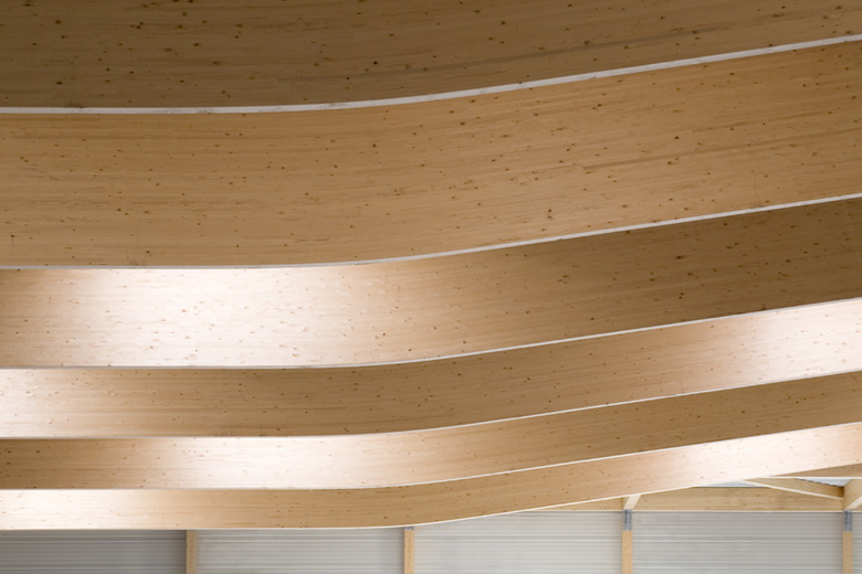Im zentralen Hallenraum erhält das Betriebsgebäude durch die Form der Dreifeld-Dachbinder ein räumliches Dachtragwerk und gibt ihm und dem Dachdeckerunternehmen einen identifikationsstiftenden und lichten Innenraum.
