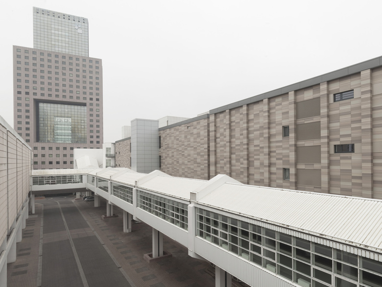 Entlang der Längsfassaden liegen auf 9 Ebenen Technik-, Büro- und Nebenräume, die im laufenden Messebetrieb umgenutzt und saniert werden. Das mehrgeschossige Westfoyer sowie die Cafébar auf der Hallensüdseite werden bis auf den Rohbau entkernt und neugestaltet.