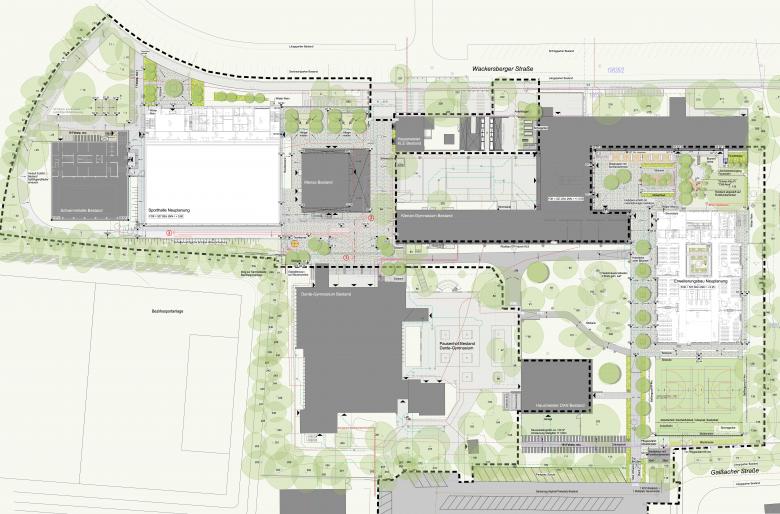Aufgabenstellung ist die Erweiterung des bestehenden Klenze-Gymnasiums mit Schulnutzungen sowie der Neubau einer 3-fach Sporthalle.