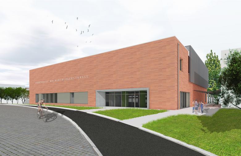 Die zwei bestehenden Einzelsporthallen mit Umkleidetrakt werden abgebrochen und durch den Neubau einer Dreifachsporthalle mit Allwetterplatz auf der Dachfläche ersetzt. Die Sporthalle wird mit einer Tribüne für den Schul- und Vereinssport konzipiert. Die Halle wird über einen überdeckten Haupteingangsbereich im Norden direkt von der Wackersberger Straße öffentlich zugänglich sein.
