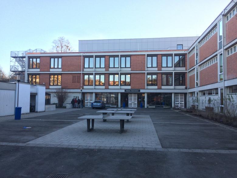 Die Neubauten nehmen das durch den Bestand geprägte Materialkonzept mit Klinkerfassade und in Teilen Sichtbetonelemente auf, und ergänzen damit das architektonische Ensemble der Gymnasien in sinnfälliger Weise.