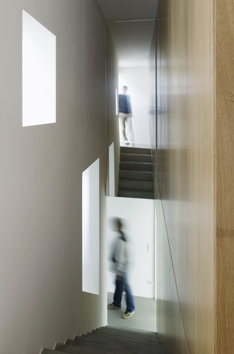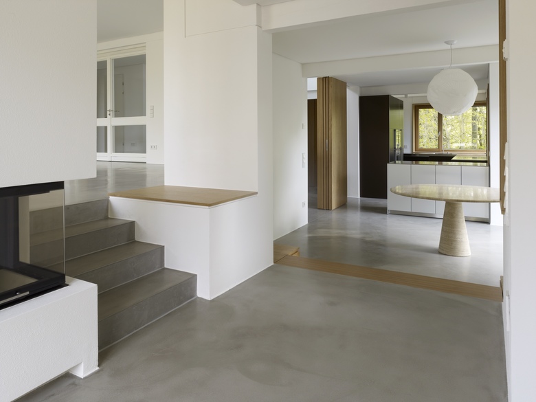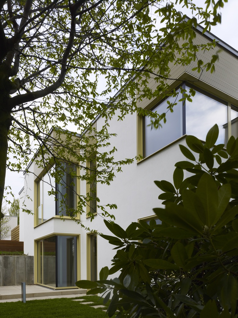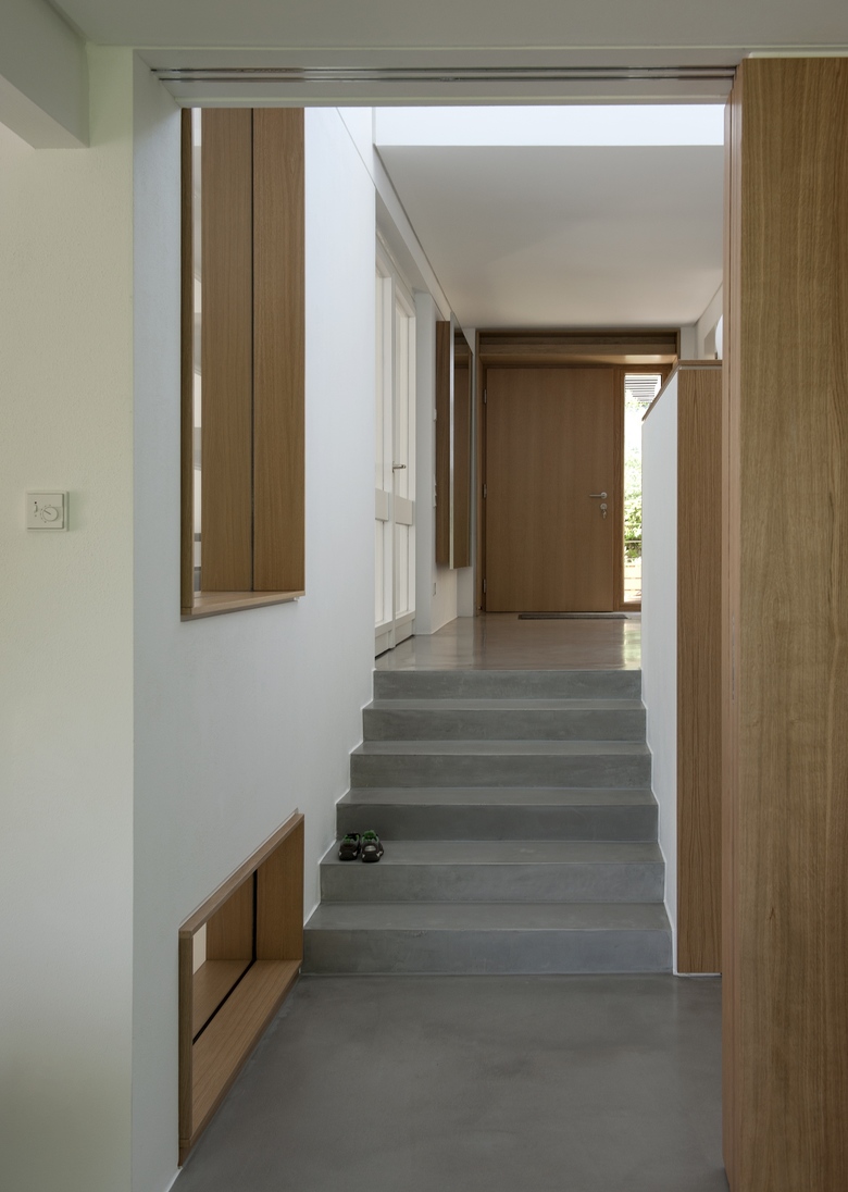 Kellerräume wurden zum Garten geöffnet; horizontale Sichtverbindungen durch das Haus in Ost/West- und Nord/Südrichtung geschaffen; vertikale Sichtbeziehungen zwischen den Ebenen hergestellt; helle Materialien eingesetzt; Übergänge zwischen den Bauteilen durch Schattenfugen akzentuiert; Fensteranlagen ausgetauscht; Dach, Wände und Böden gedämmt; Haustechnik erneuert und die Gartenanlagen zu korrespondierenden Außenräumen umgestaltet.