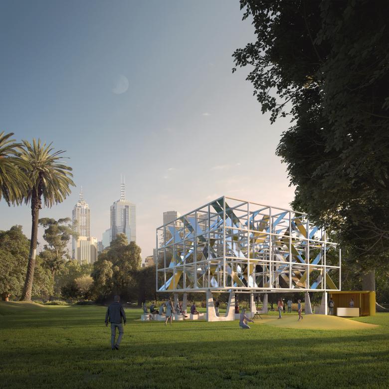 The project for the temporary pavilion commissioned by the Naomi Milgrom Foundation in Queen Victoria Gardens explores the condition of architectural device as a powerful attractor and display of the creative and dynamic quality of the city of Melbourne, as previous editions have fully demonstrated.