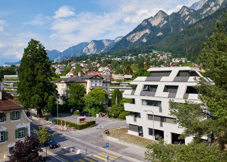 Als Solitär ist das Gebäude wie selbstverständlich an der Kreuzung Masanserstrasse/Neubruchstrasse – in gebührendem Abstand zur Villa Zambail – platziert.