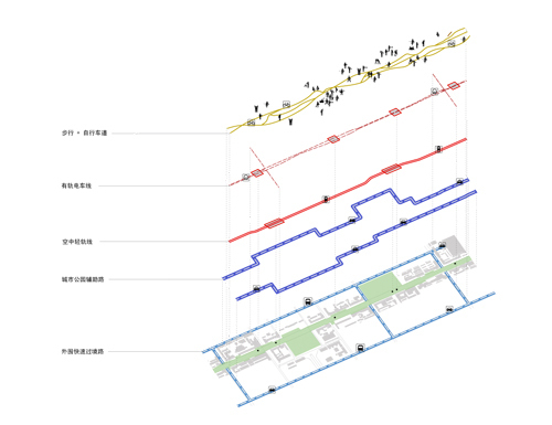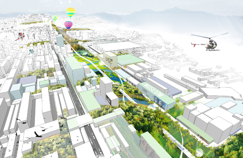With this historical context, we envisioned a different Steel Boulevard for the future, which reinforces its function for cultural and public services, yet also introduce natural landscape as the medium to thread through the cultural, services, commercial and sport functions networked along the 7km space.